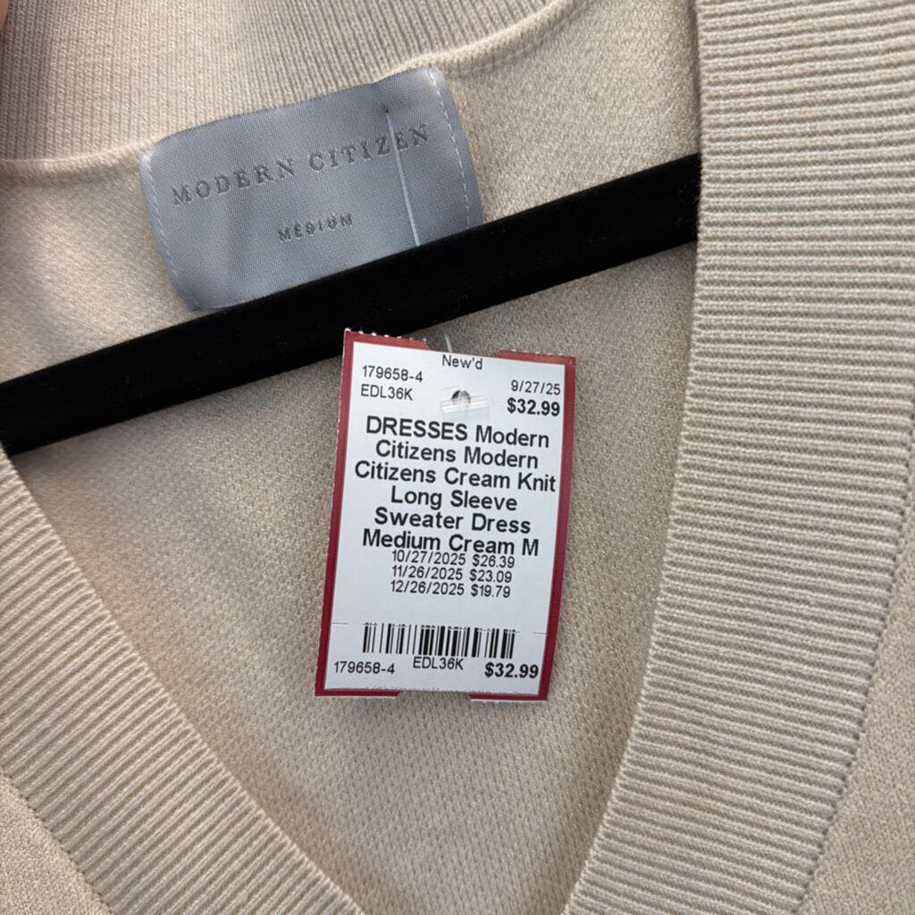 Modern Citizens Cream Knit Long Sleeve Sweater Dress Medium
