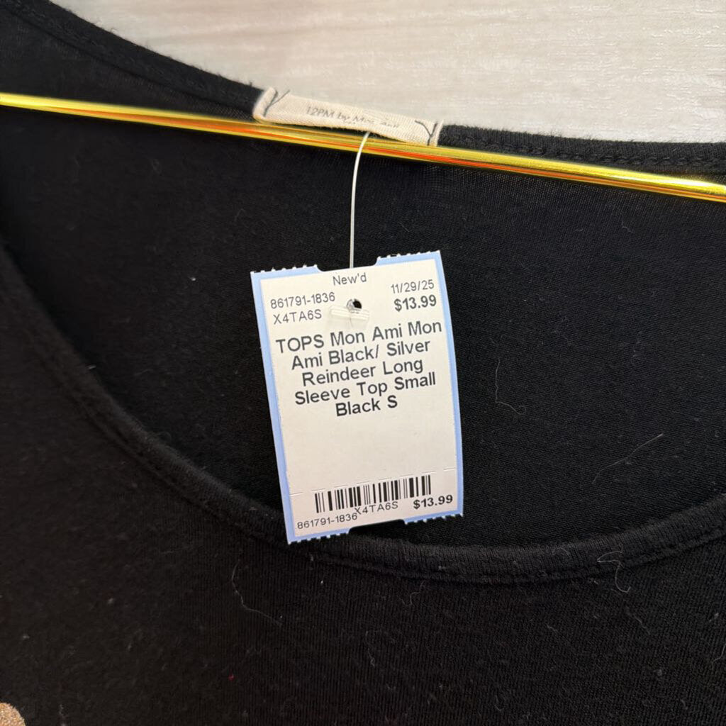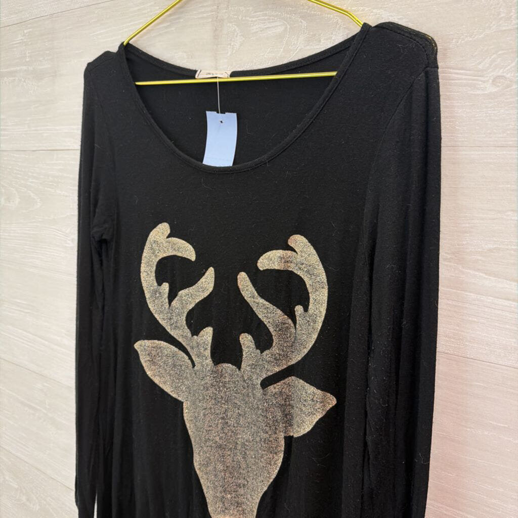 Mon Ami Black/ Silver Reindeer Long Sleeve Top Small