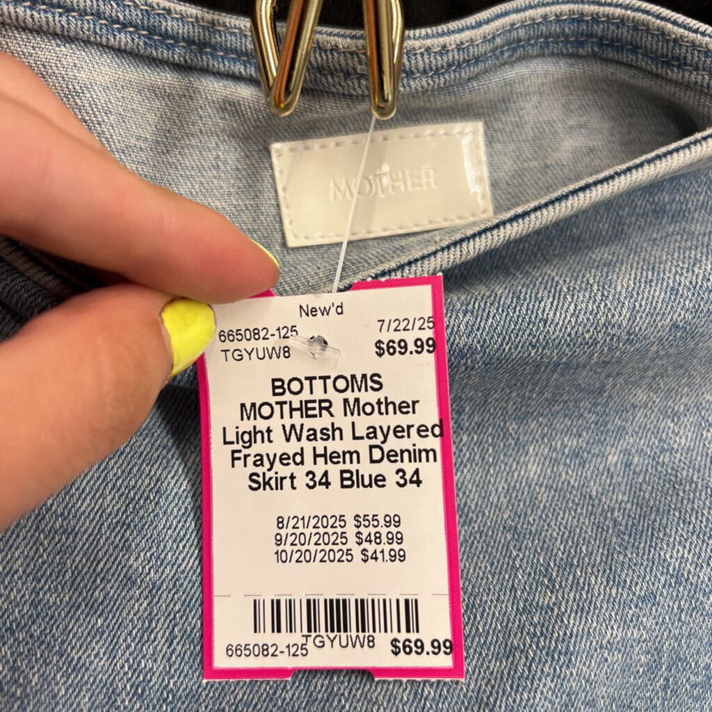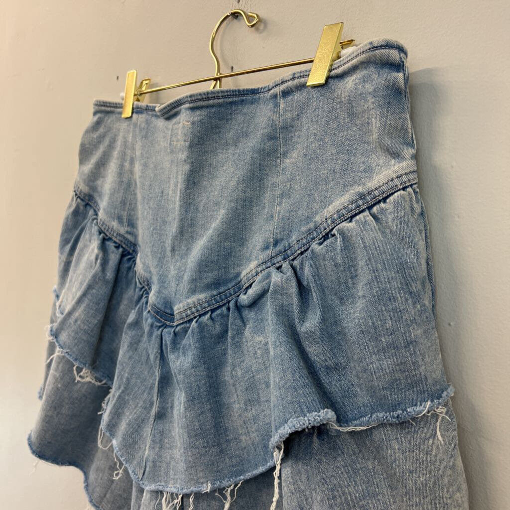 Mother Light Wash Layered Frayed Hem Denim Skirt 34