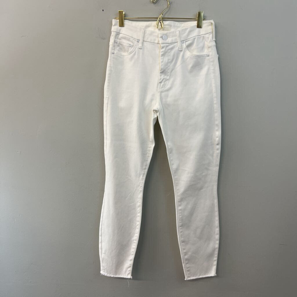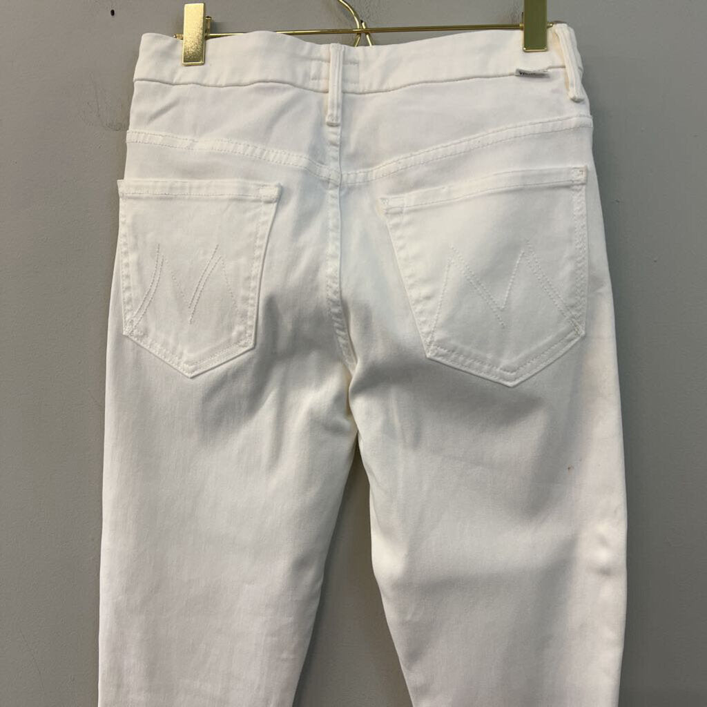Mother White Denim High Waisted Looker Dagger Ankle Fray Jeans 26