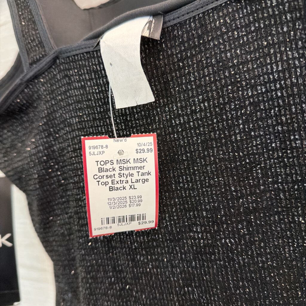 MSK Black Shimmer Corset Style Tank Top Extra Large
