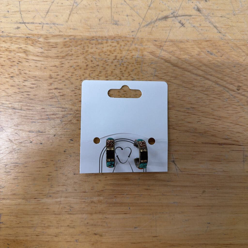 Multi Color Stone Small Hoop Earrings