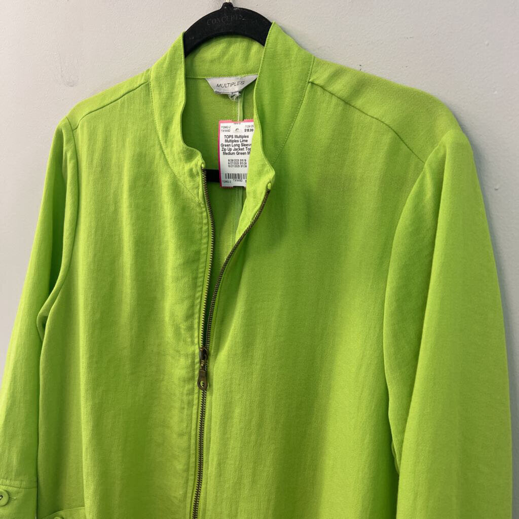 Multiples Lime Green Long Sleeve Zip Up Jacket Top Medium