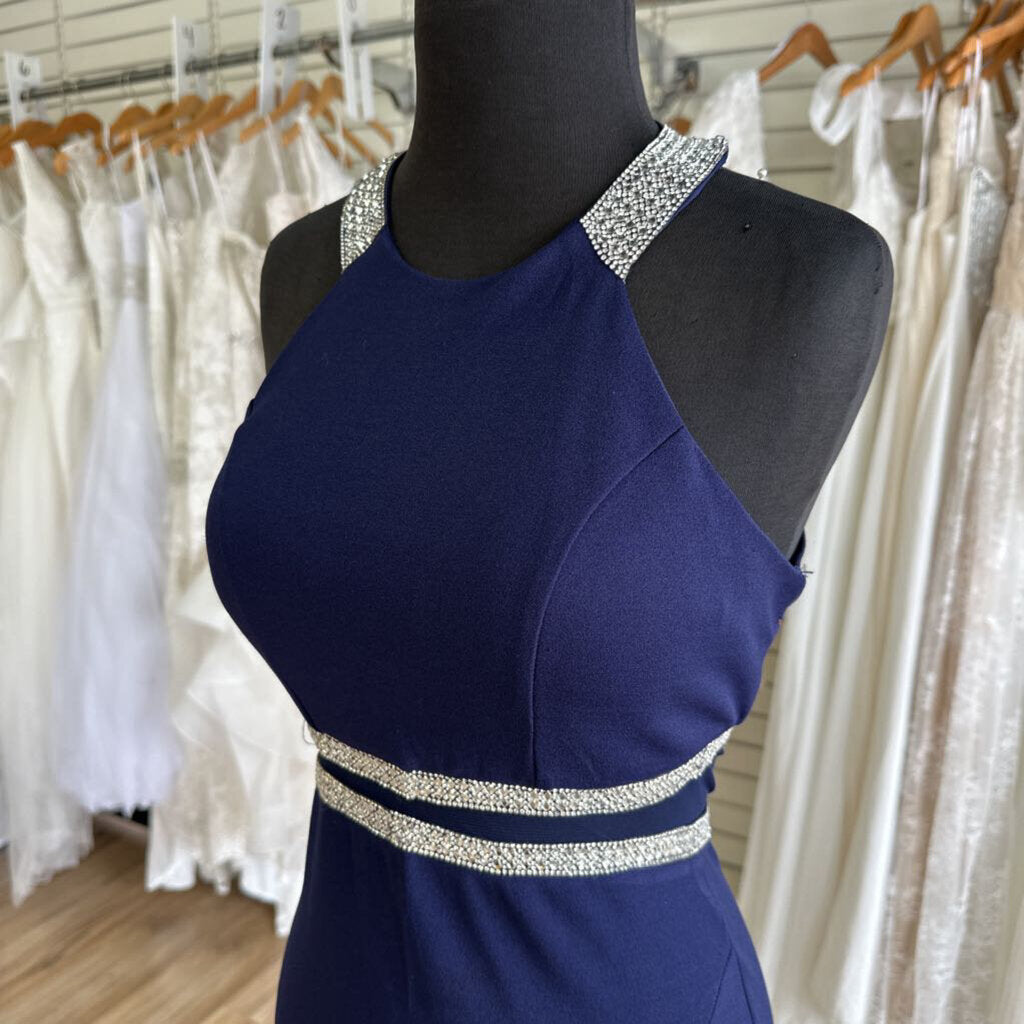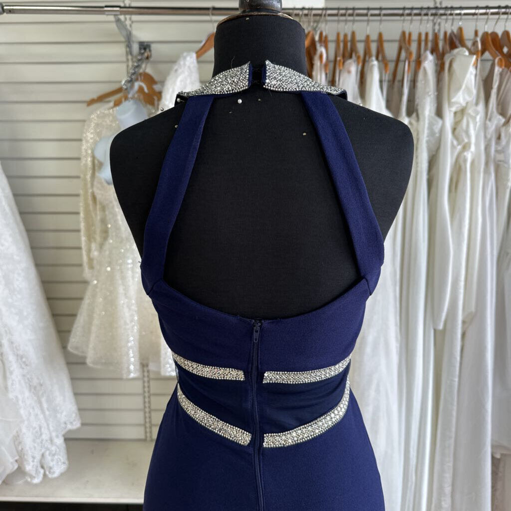 My Michelle Jersey Rhinestone Halter Long Dress 1