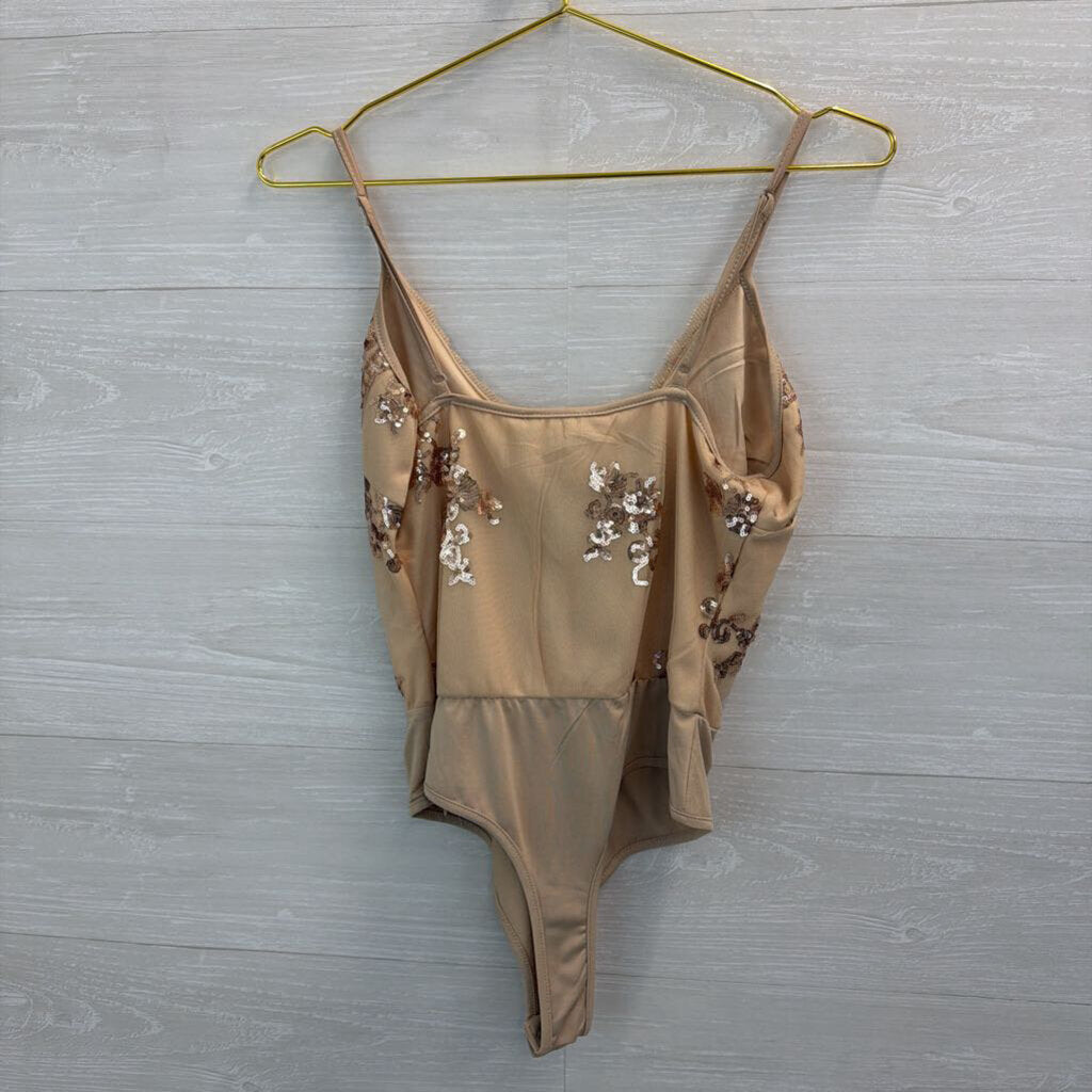 Naanaa Beige/ Gold Sequin Tank Bodysuit 12