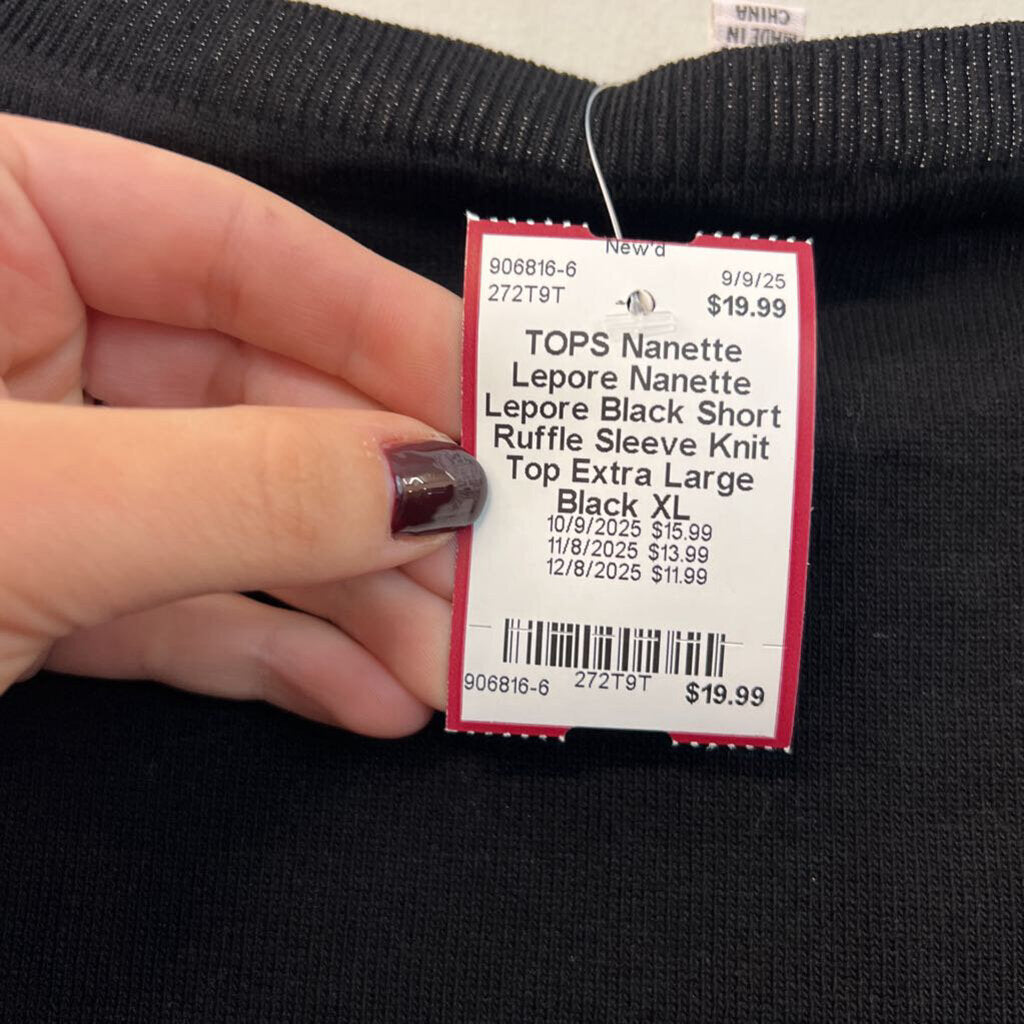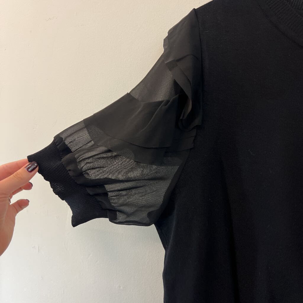 Nanette Lepore Black Short Ruffle Sleeve Knit Top Extra Large