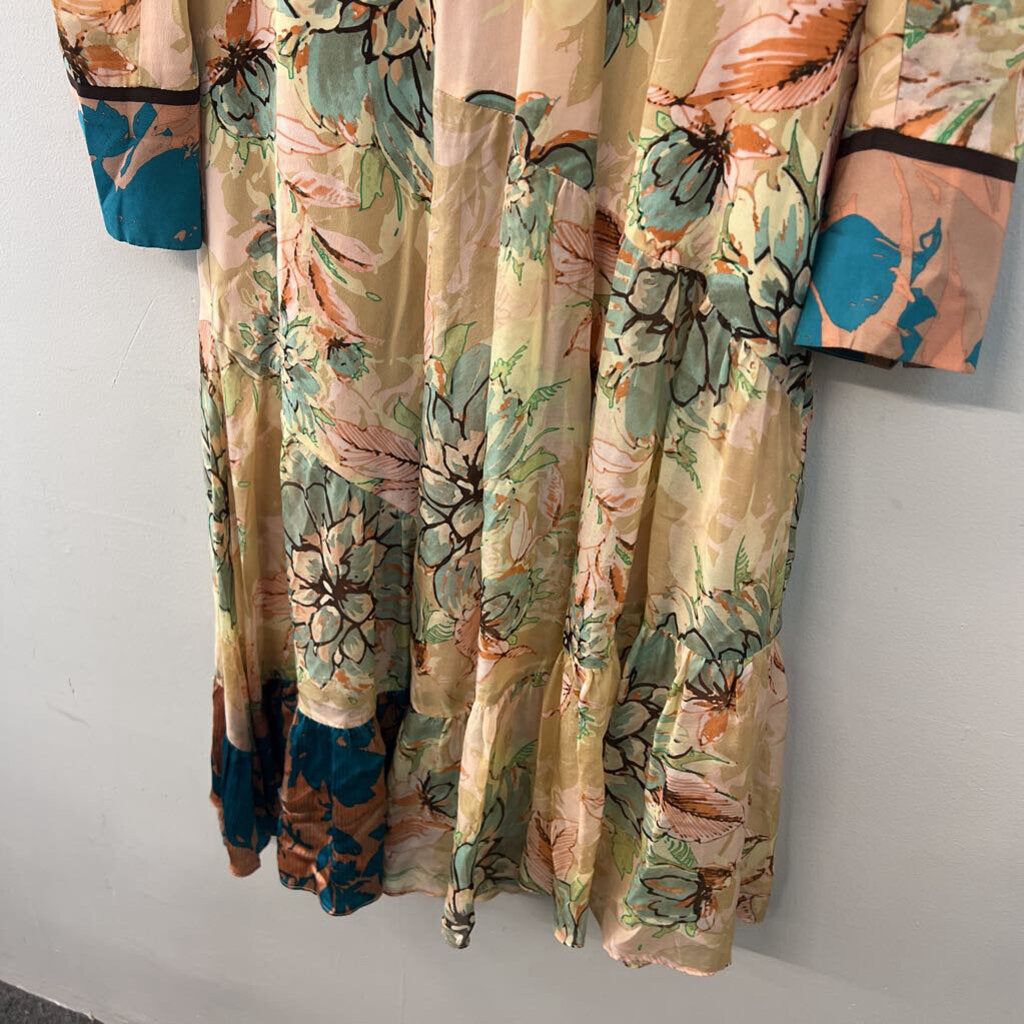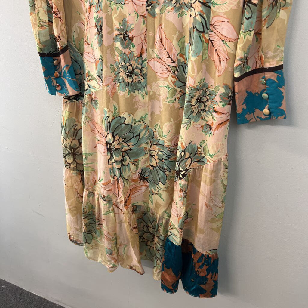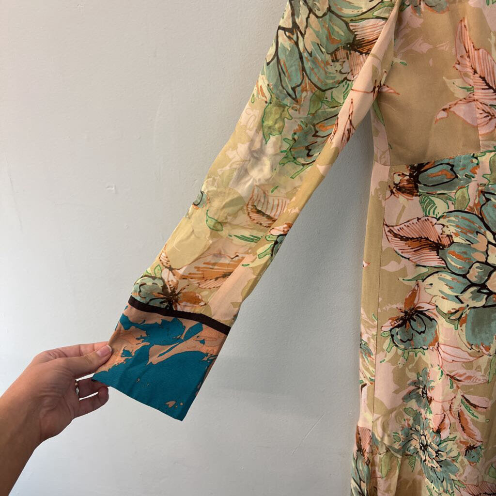 Nanette Lepore Pink/ Multi Print Long Sleeve Midi Dress Medium