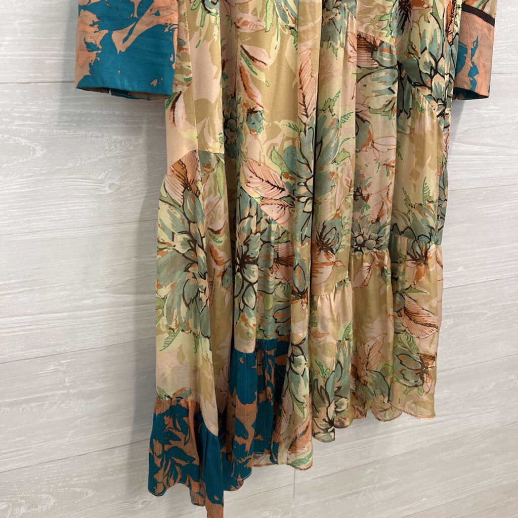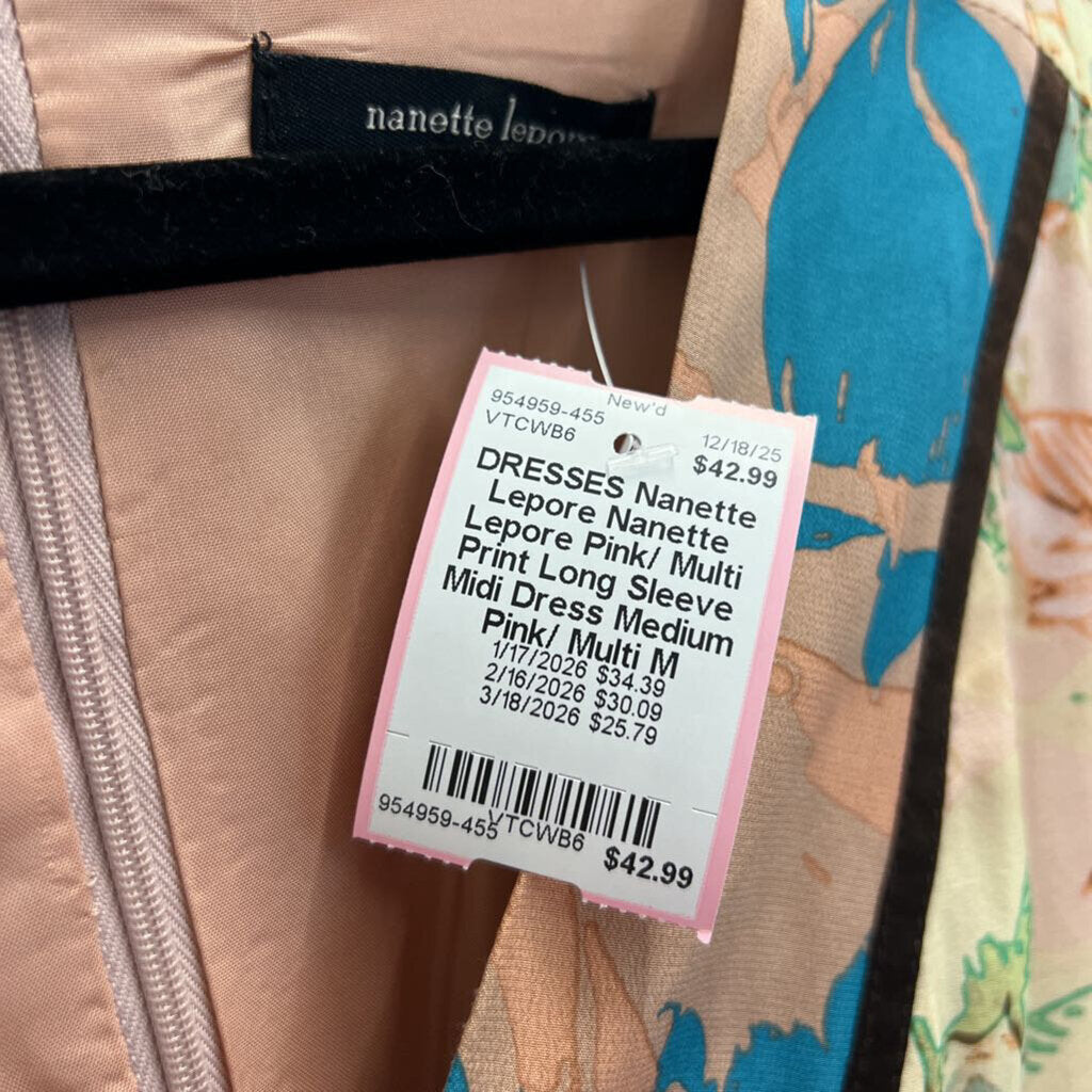 Nanette Lepore Pink/ Multi Print Long Sleeve Midi Dress Medium