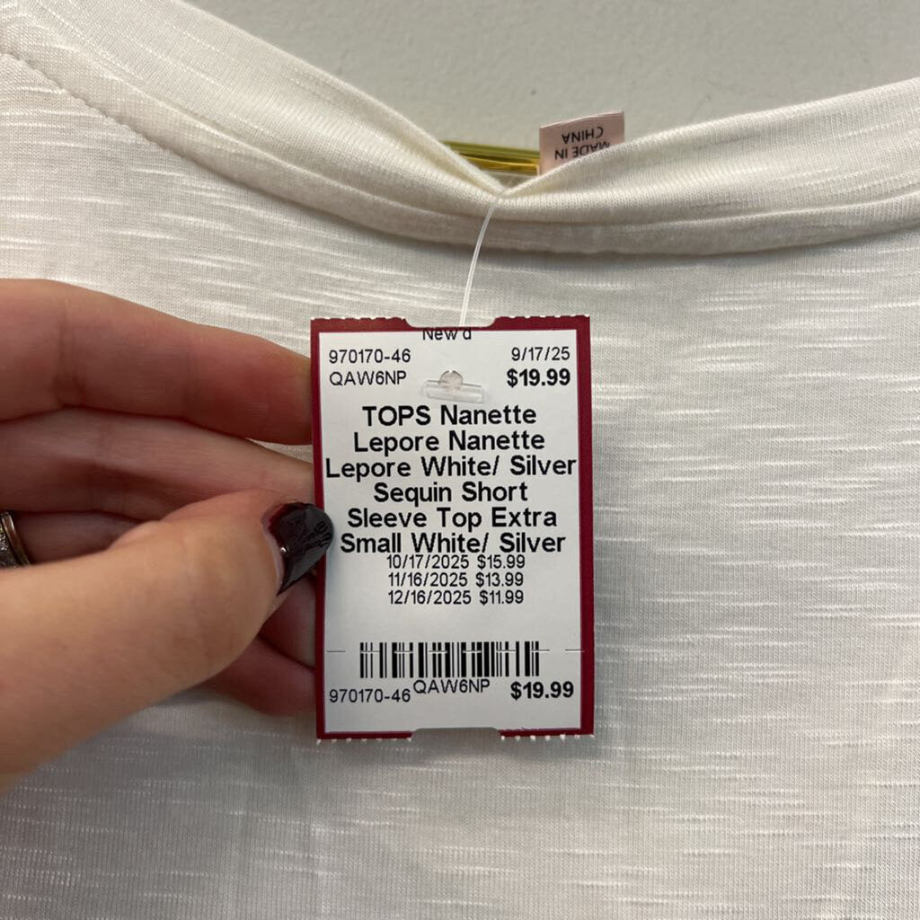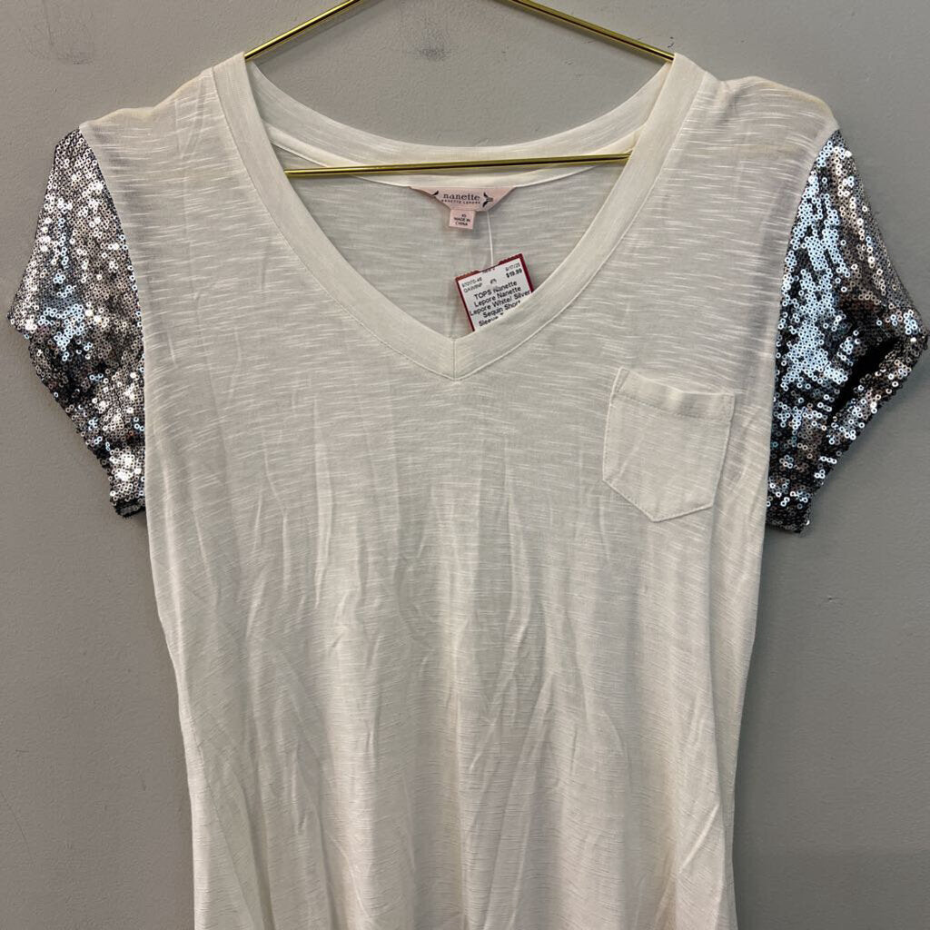 Nanette Lepore White/ Silver Sequin Short Sleeve Top Extra Small