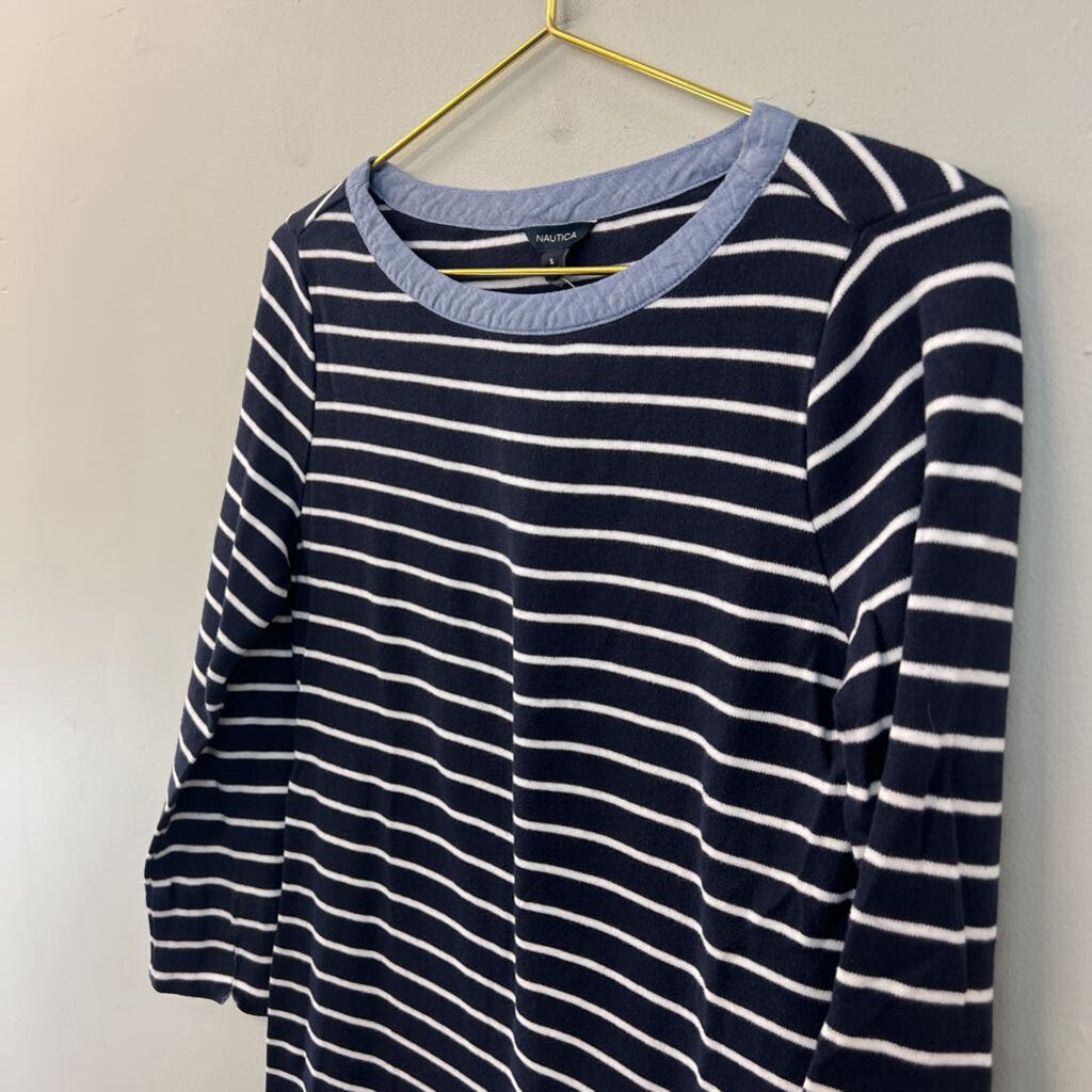 Nautica Navy/ White Striped Long Sleeve Top Small