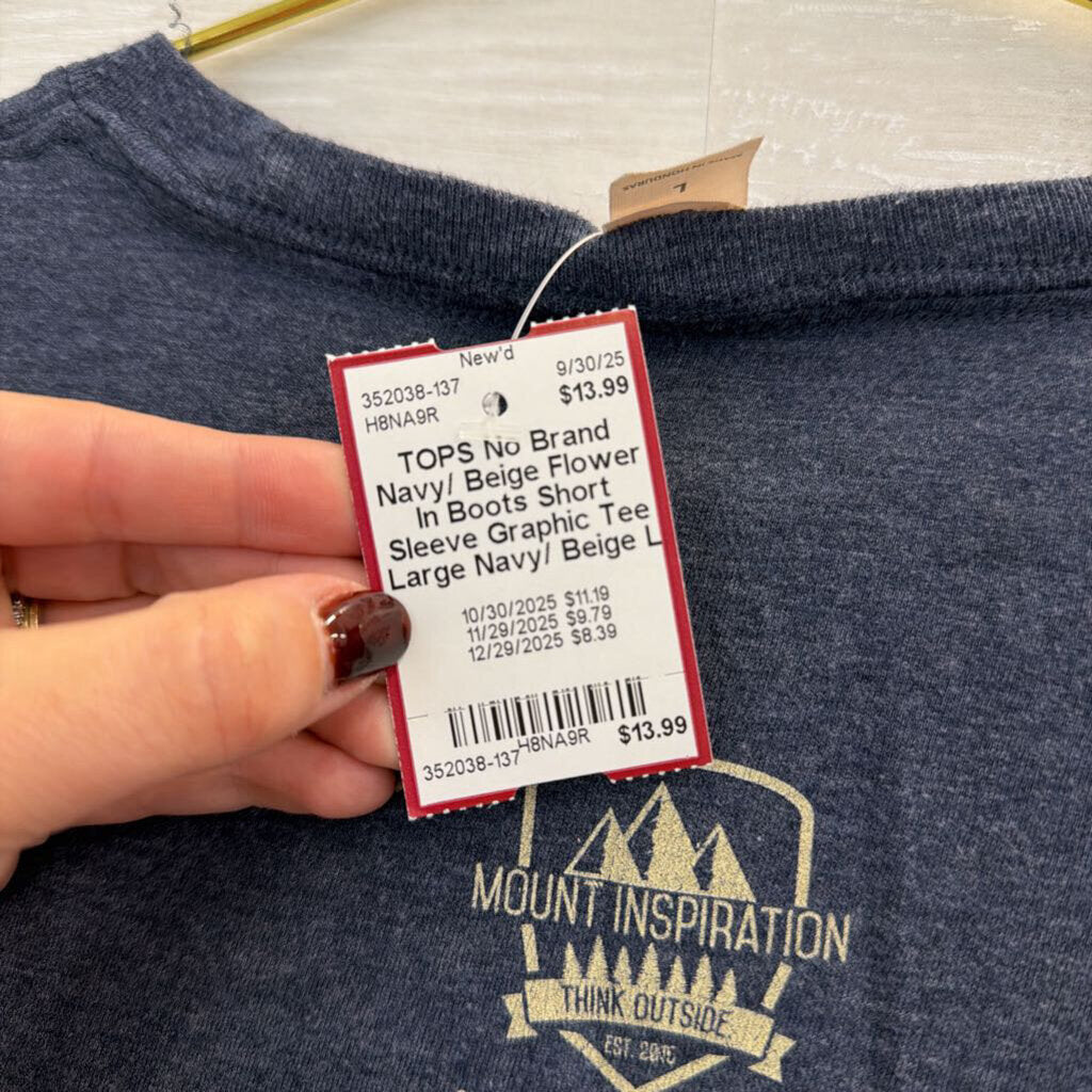 Navy/ Beige Flower In Boots Short Sleeve Graphic Tee Large