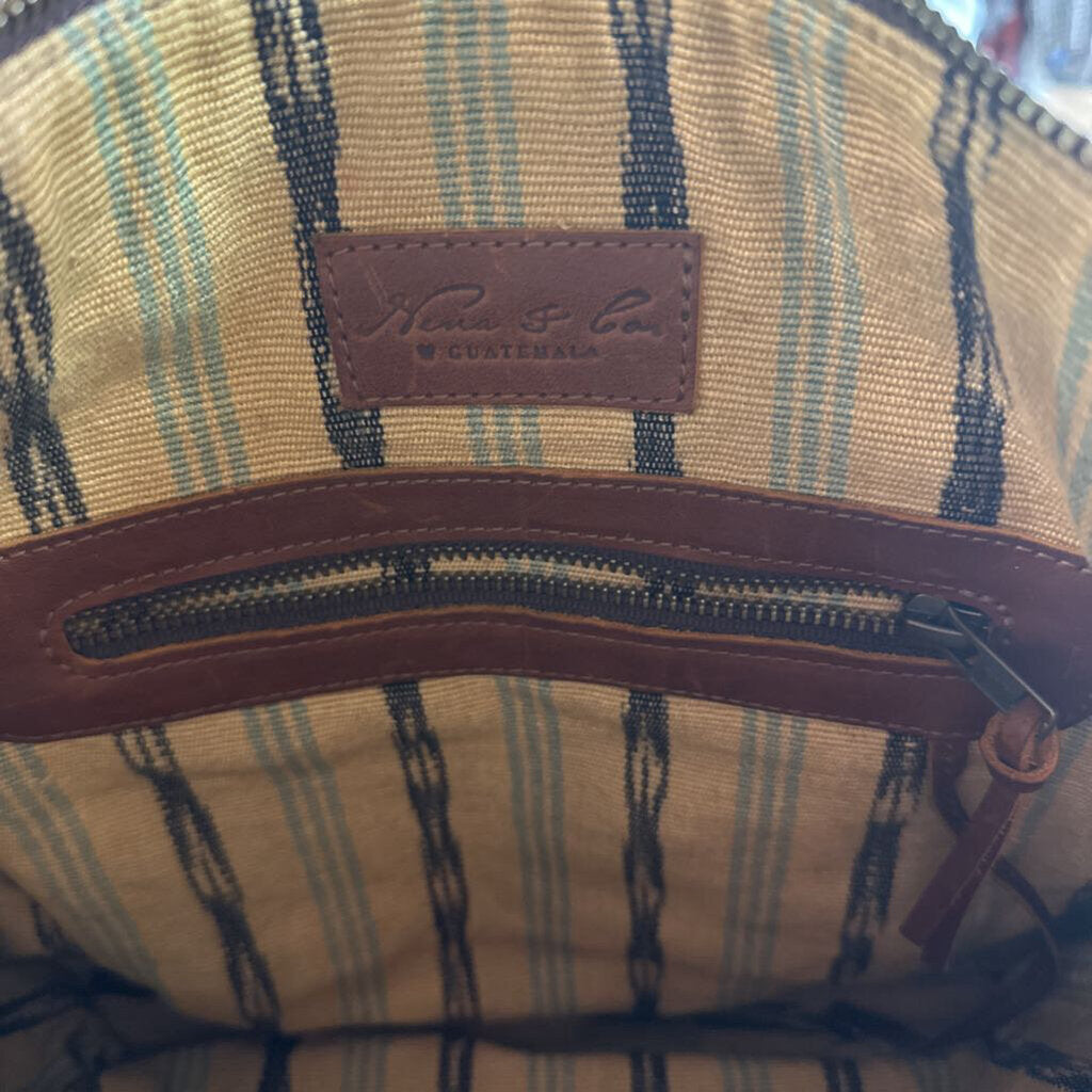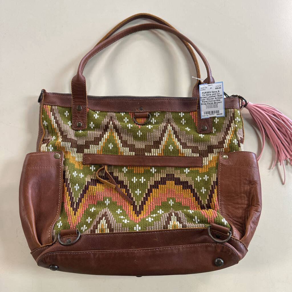 Nena and Co Brown Leather/ Multi Color Woven Artisan Panel Convertible Strap Purse