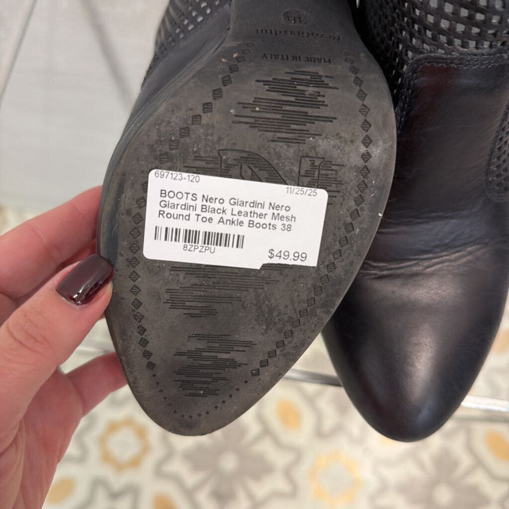Nero Giardini Black Leather Mesh Round Toe Ankle Boots 38