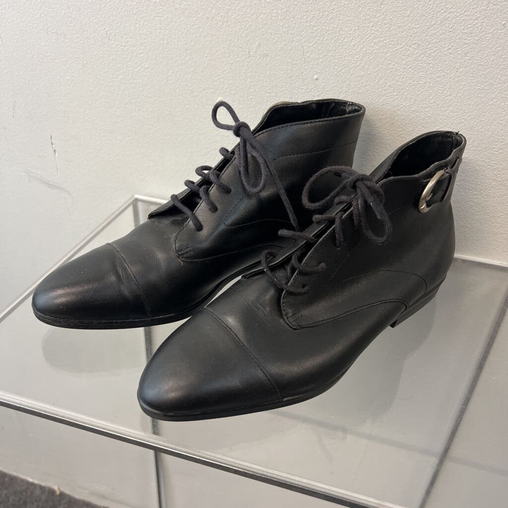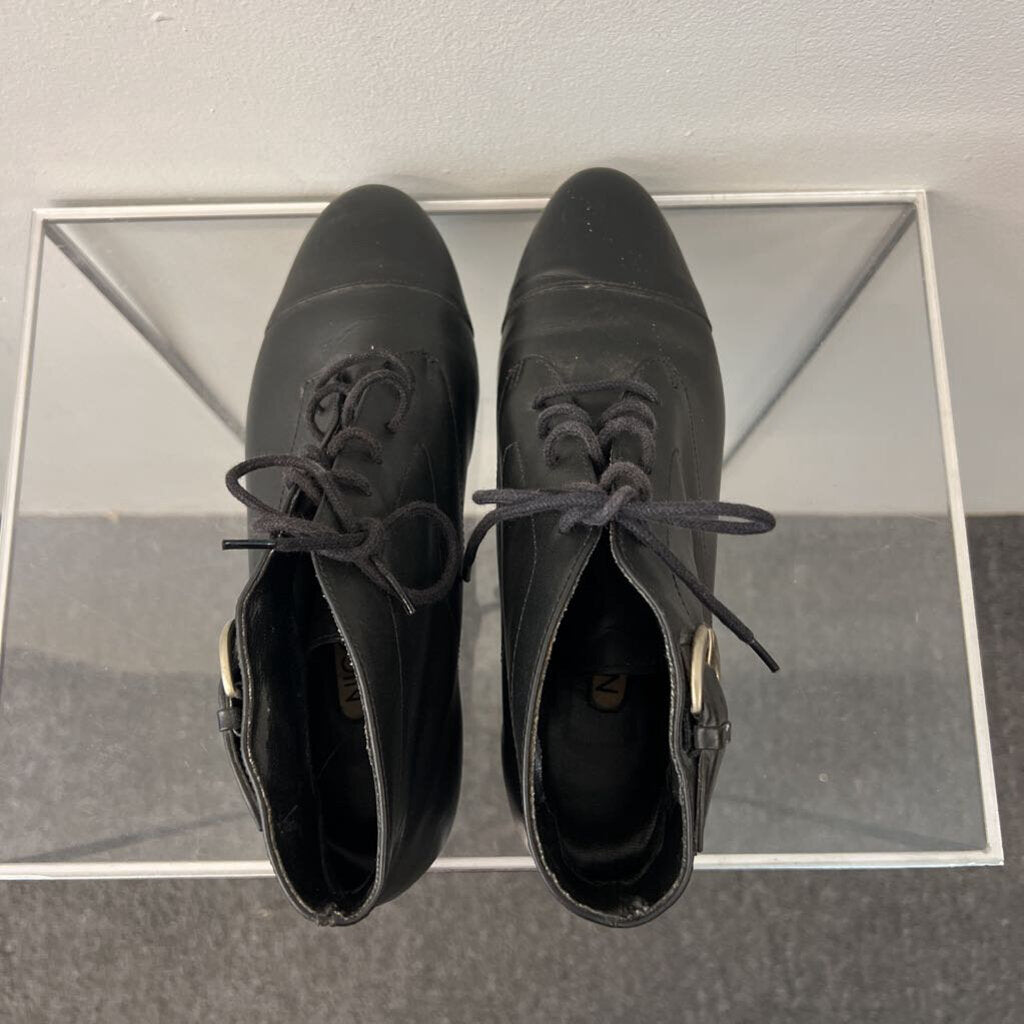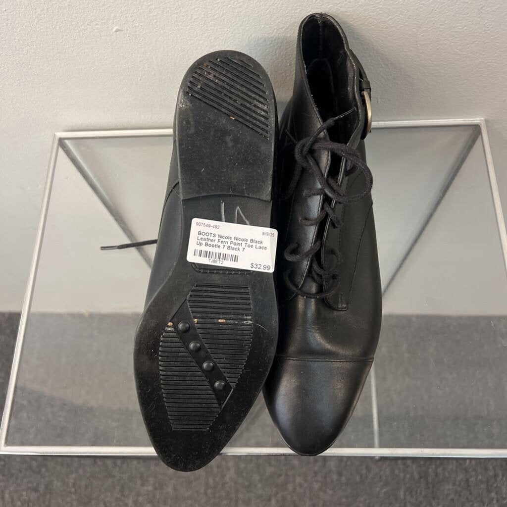 Nicole Black Leather Fern Point Toe Lace Up Bootie 7