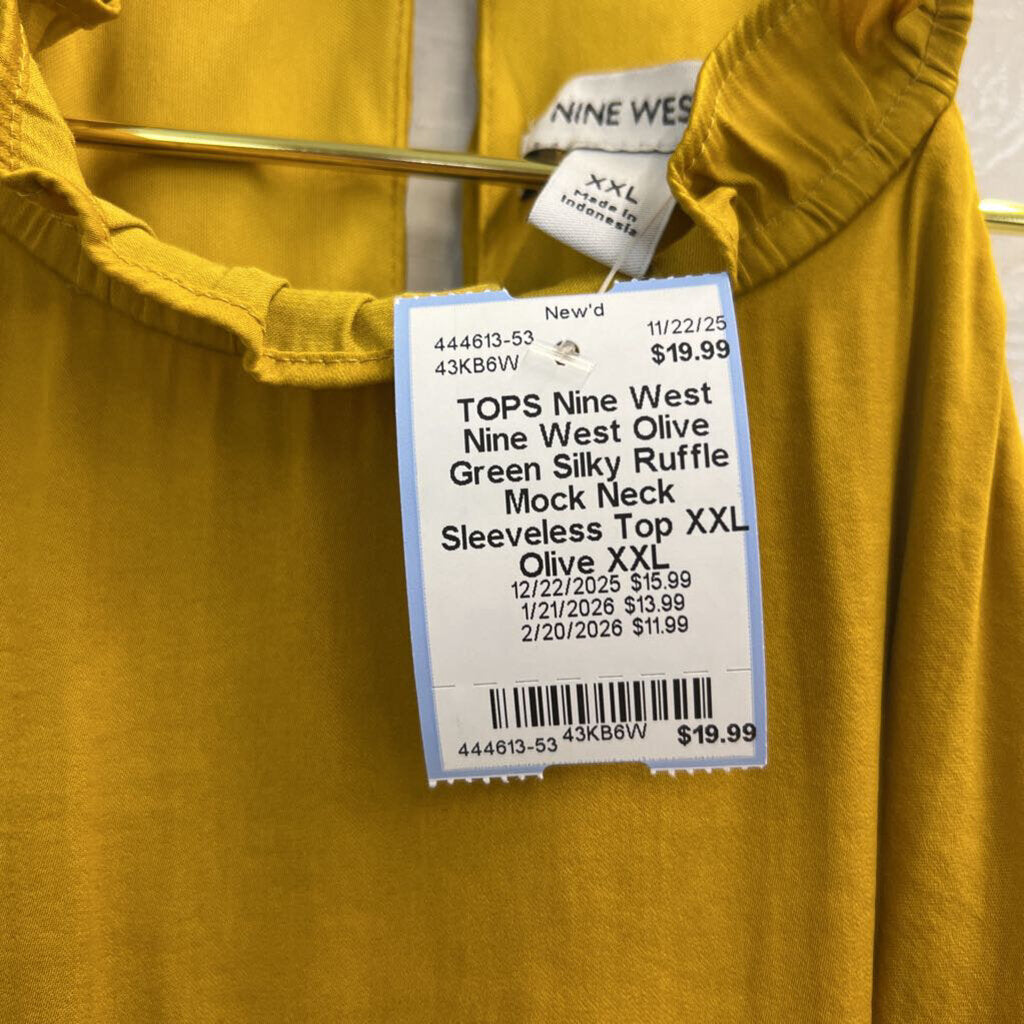 Nine West Olive Green Silky Ruffle Mock Neck Sleeveless Top XXL