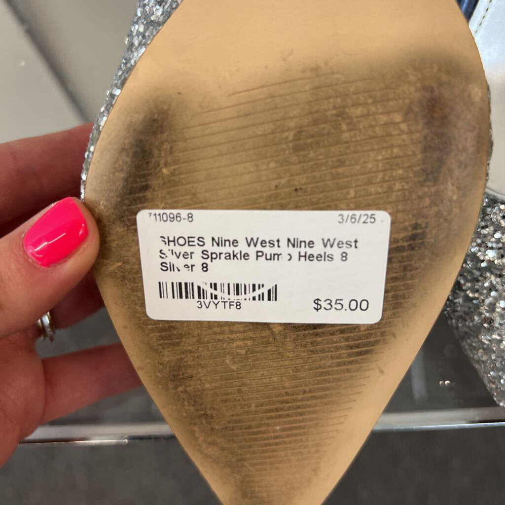 Nine West Silver Sparkle Pump Heels 8