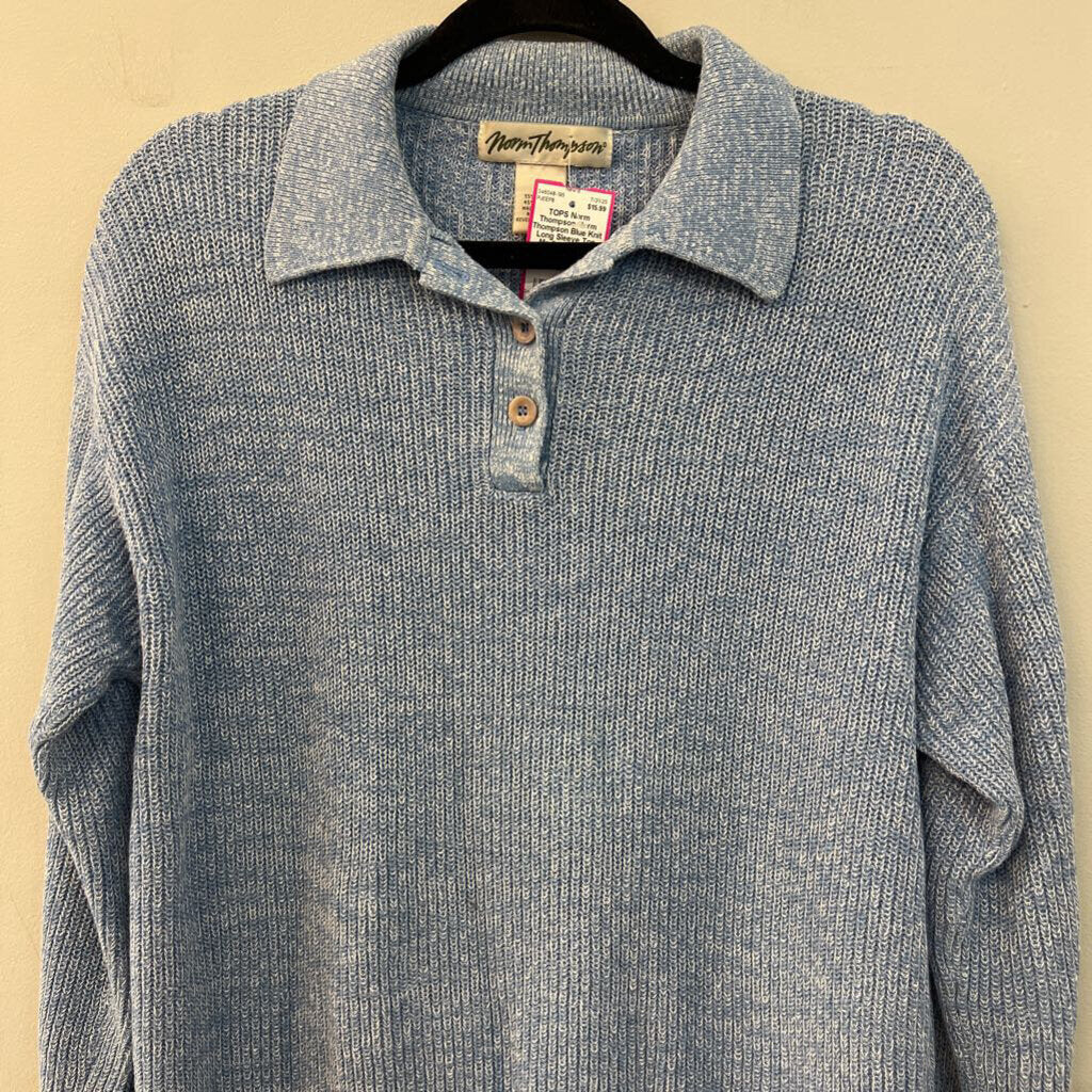 Norm Thompson Blue Knit Long Sleeve Top Medium
