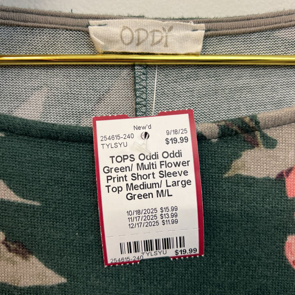 Oddi Green/ Multi Flower Print Short Sleeve Top Medium/ Large
