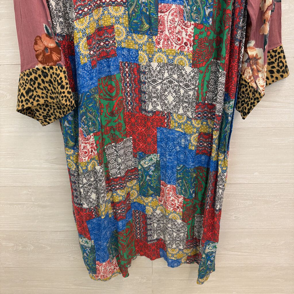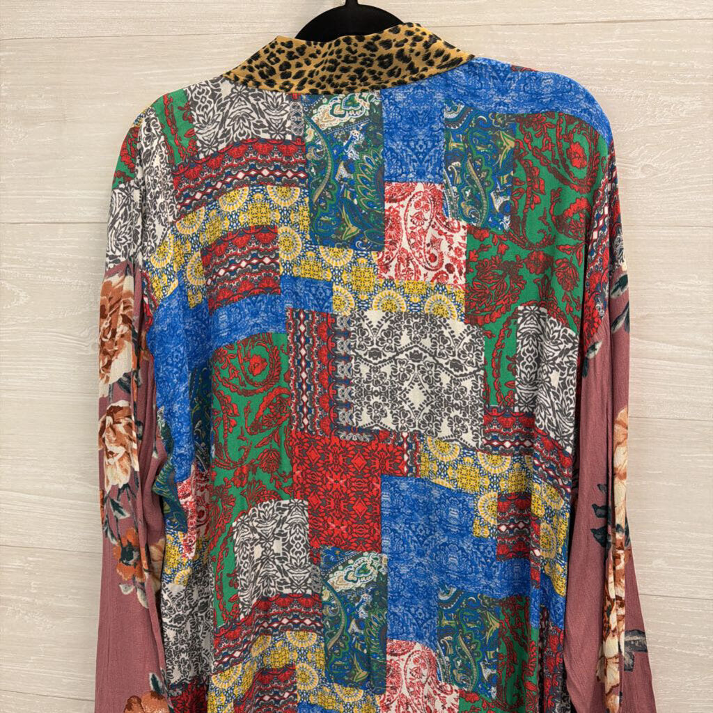 Oddi Multi Color Print Long Sleeve Open Front Kimono Top 1XL/ 2XL