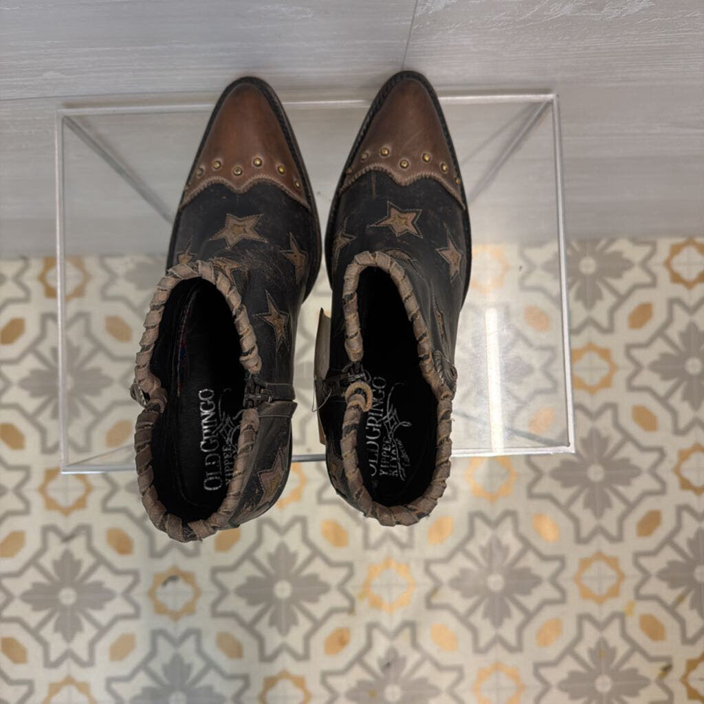 Old Gringo Yippee Ki Yay Glamis Leather Western Star Print Ankle Boots 8.5