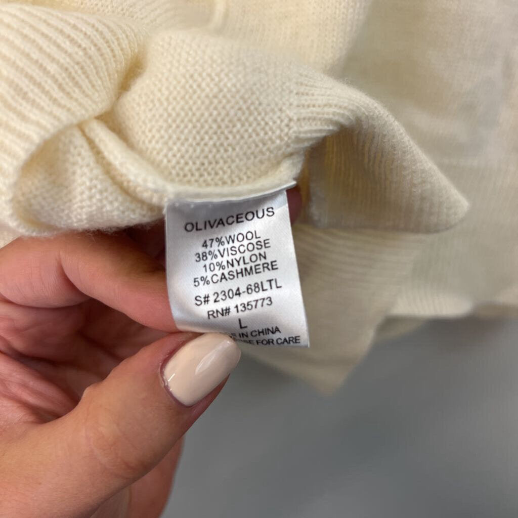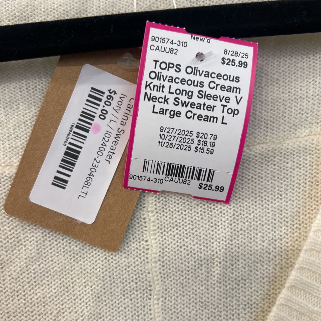 Olivaceous Cream Knit Long Sleeve V Neck Sweater Top Large