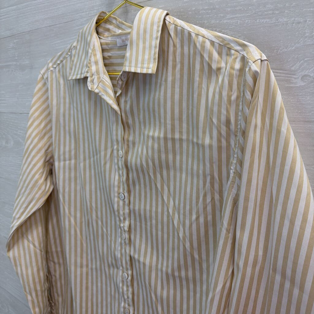 Olivaceous White/ Beige Striped Long Sleeve Button Down Top Small