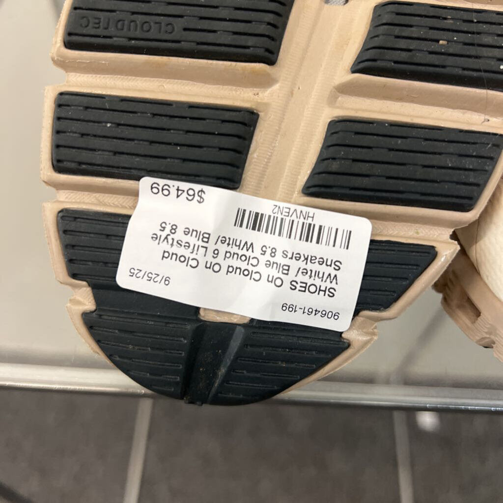 On Cloud White/ Blue Cloud 6 Lifestyle Sneakers 8.5