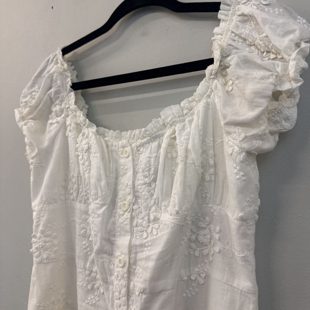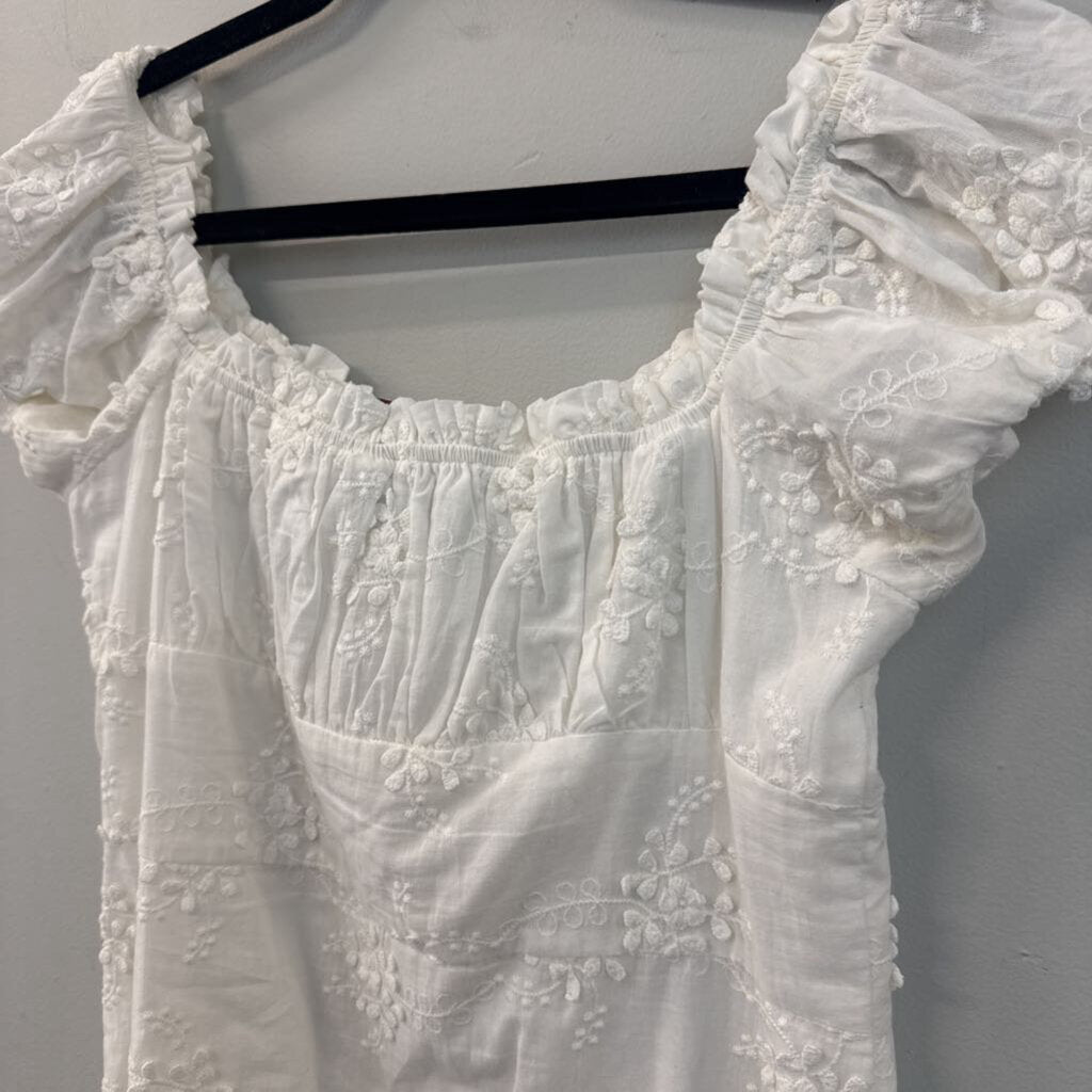 OPT Cream 3D Lace Short Puff Sleeve Dress Medium