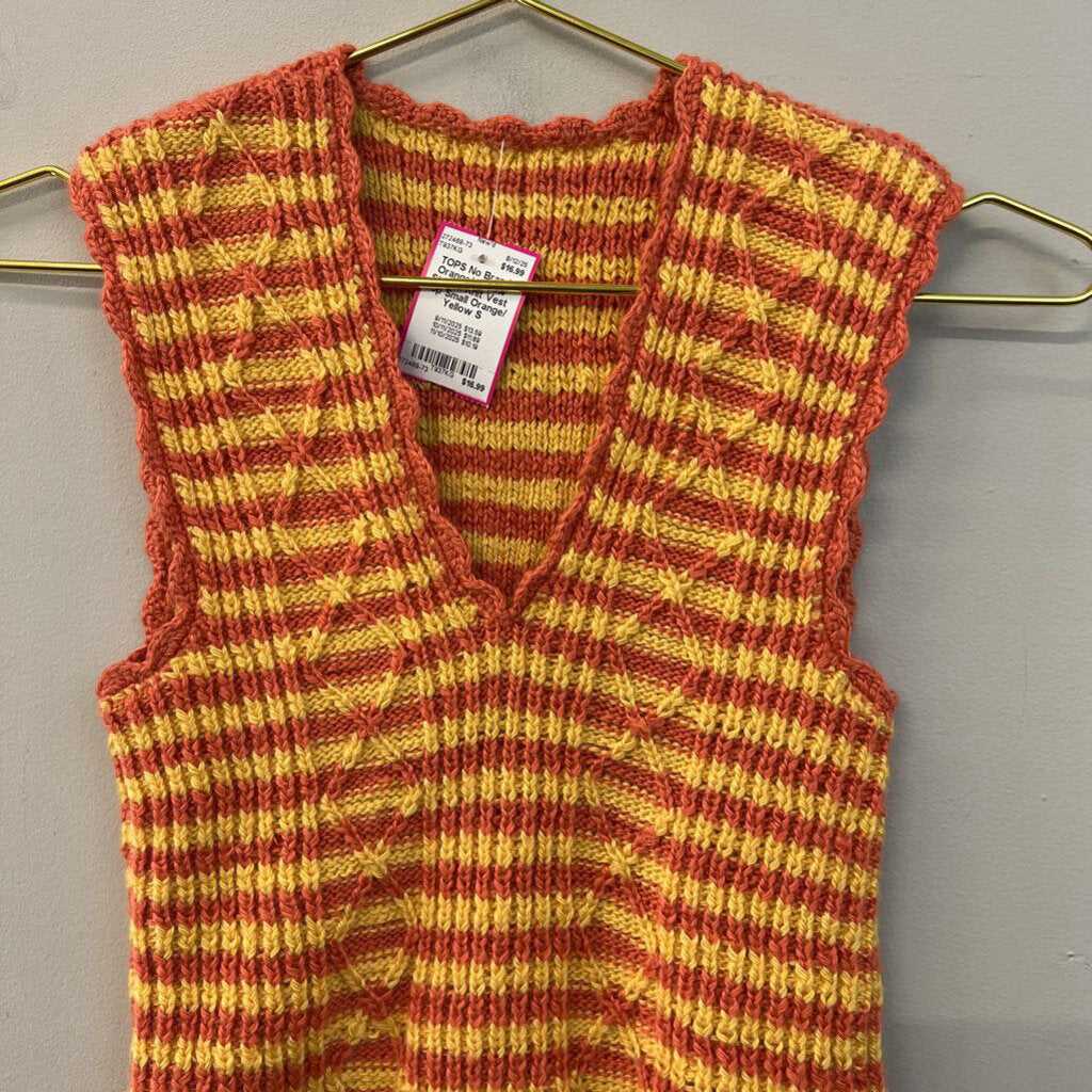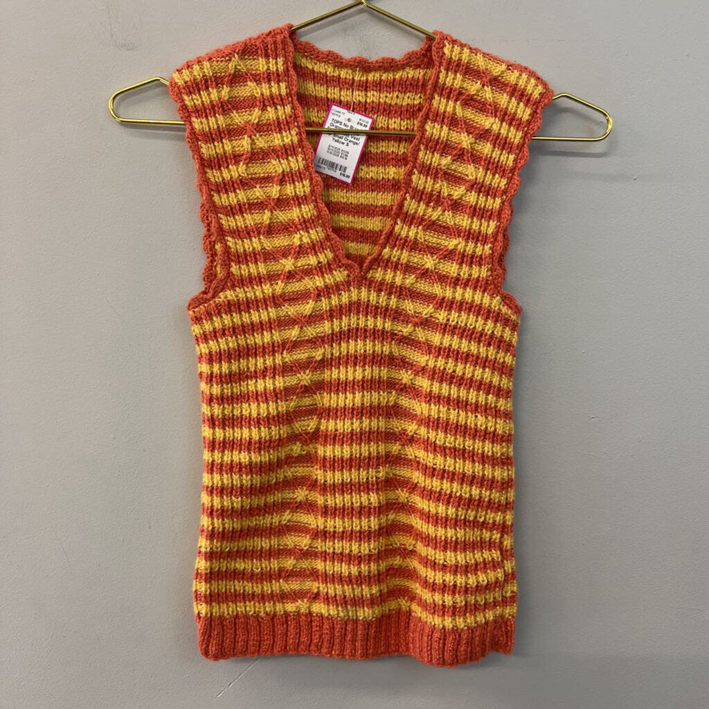 Orange/ Yellow Striped Knit Vest Top Small