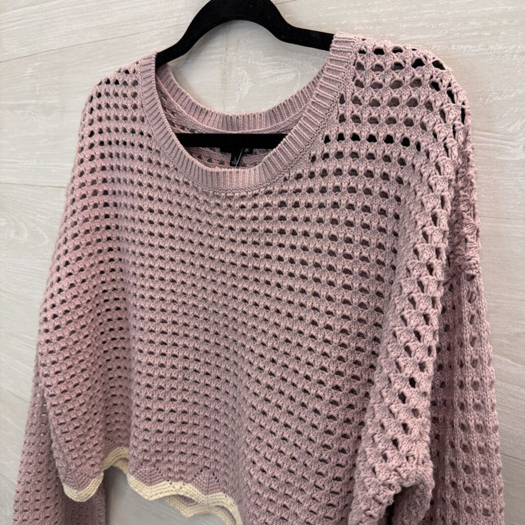 Originality Purple/ White Open Knit Cropped Sweater Top Large