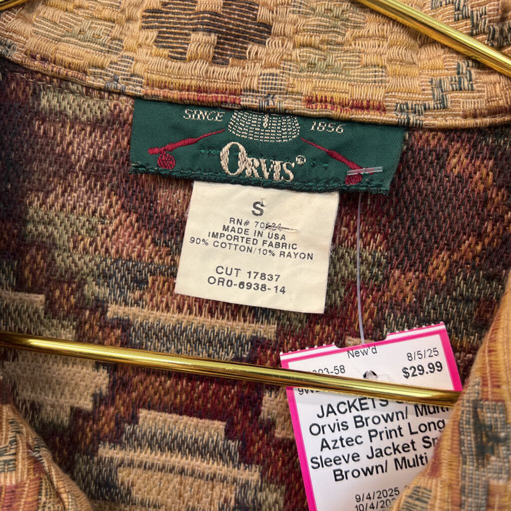 Orvis Brown/ Multi Aztec Print Long Sleeve Jacket Small