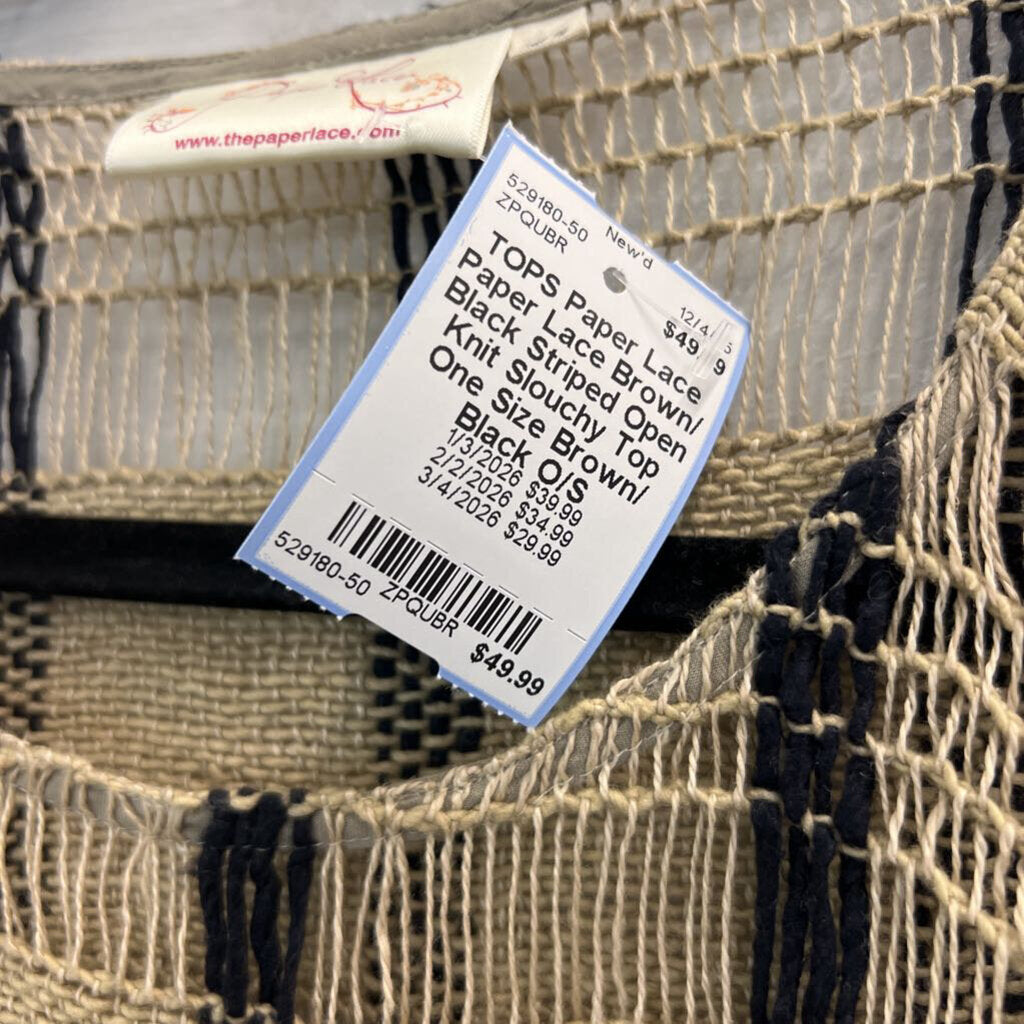 Paper Lace Brown/ Black Striped Open Knit Slouchy Top One Size