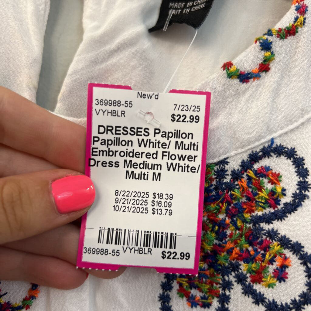 Papillon White/ Multi Embroidered Flower Dress Medium