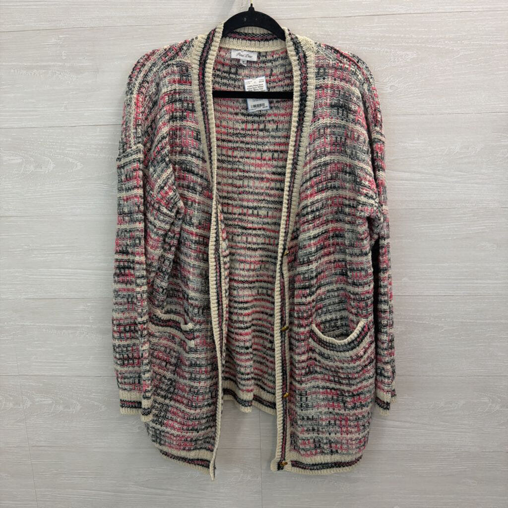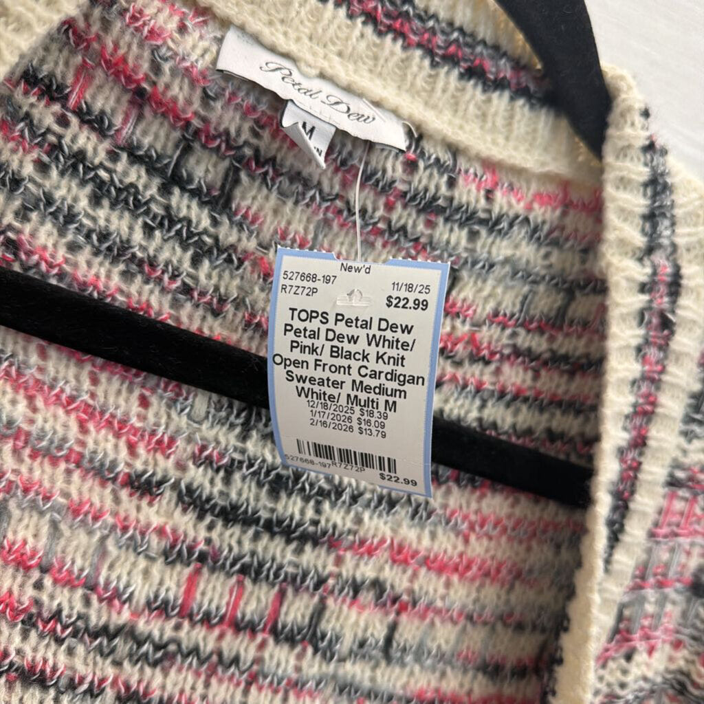 Petal Dew White/ Pink/ Black Knit Open Front Cardigan Sweater Medium