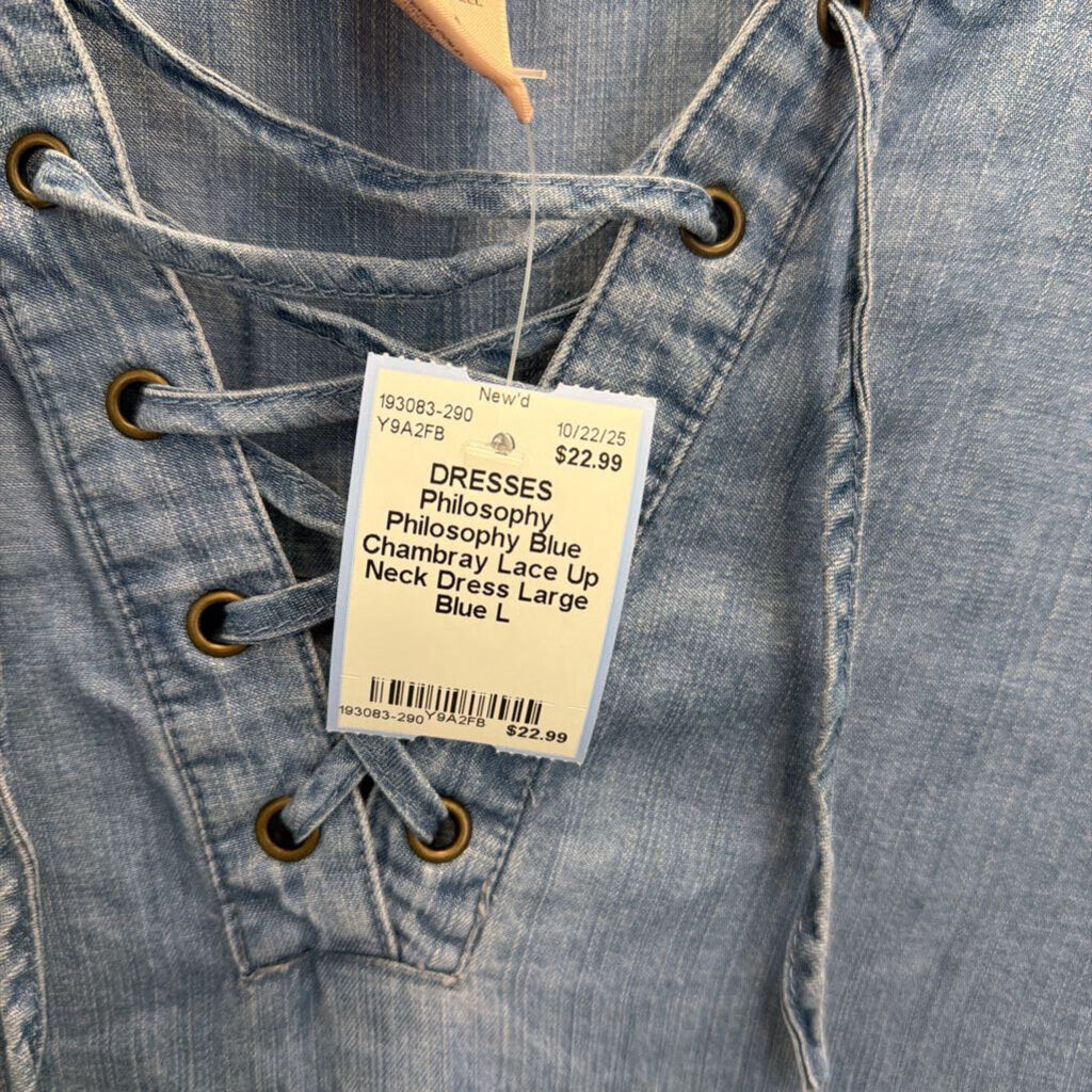 Philosophy Blue Chambray Lace Up Neck Dress Large