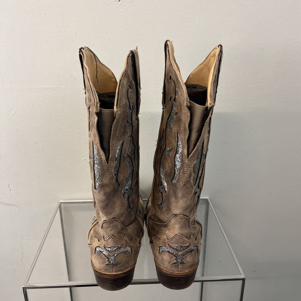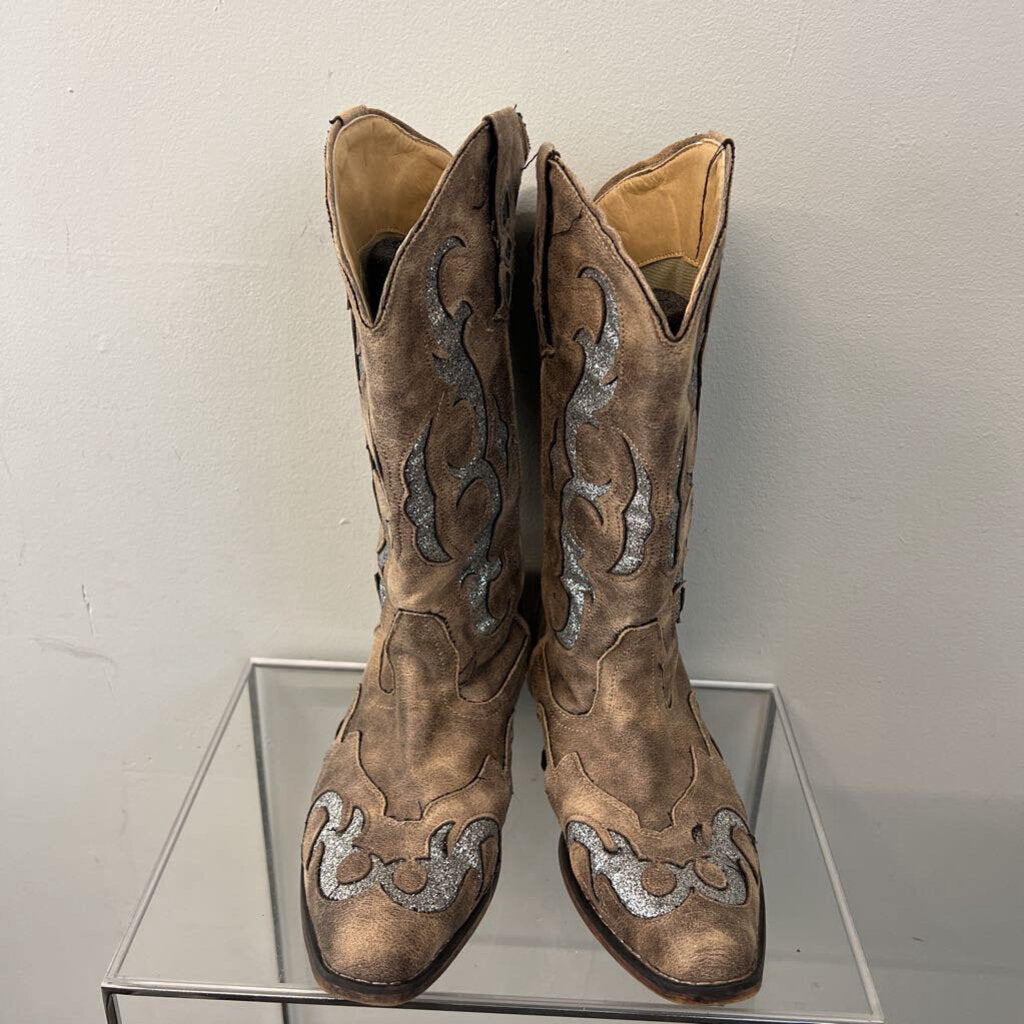 Pierre Dumas Brown/ Silver Glitter Kaylee Cowgirl Boots 10