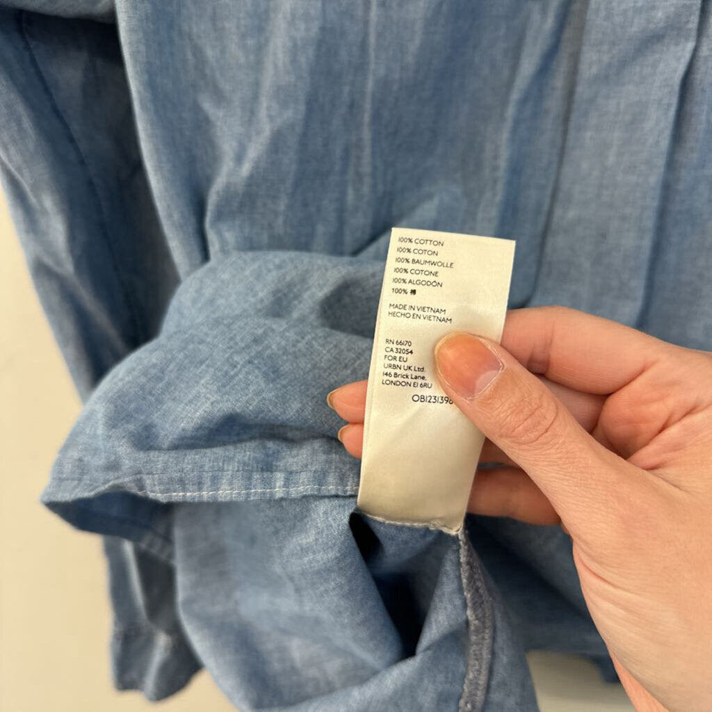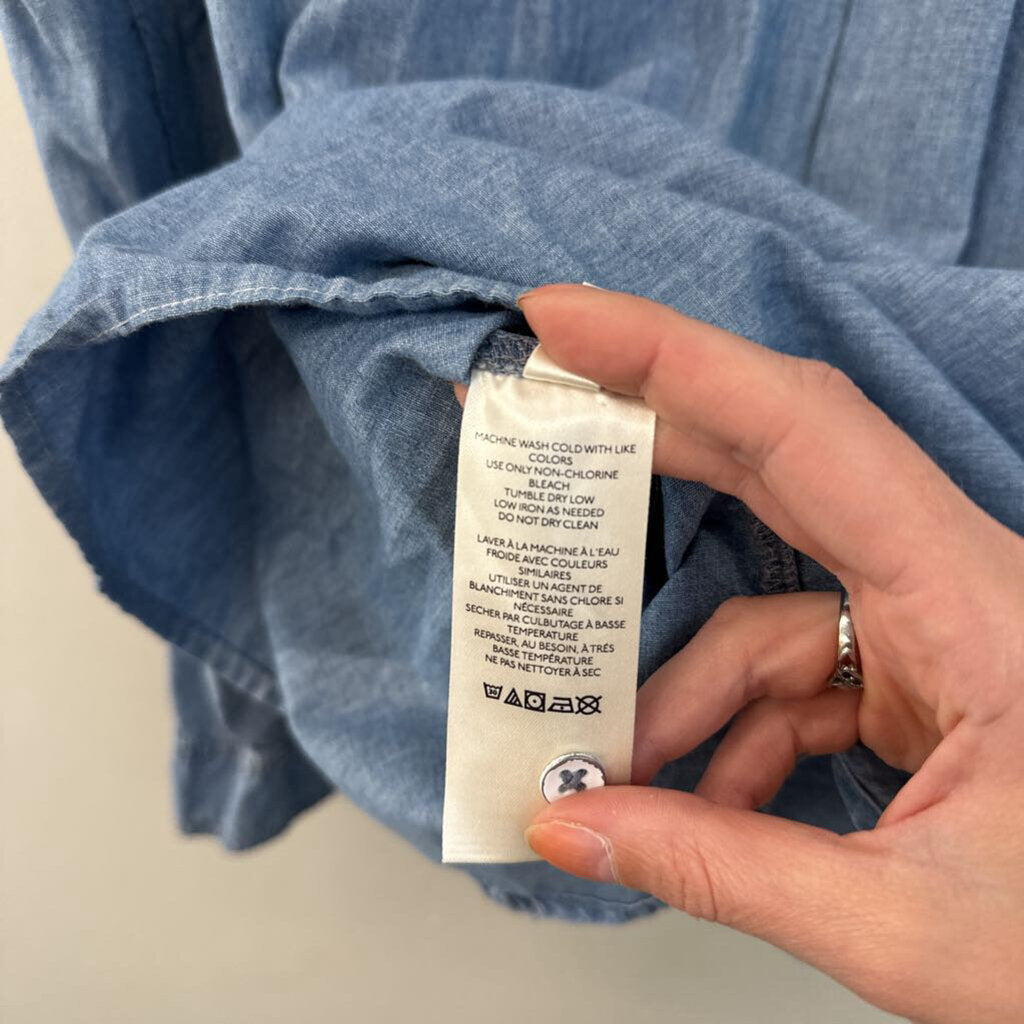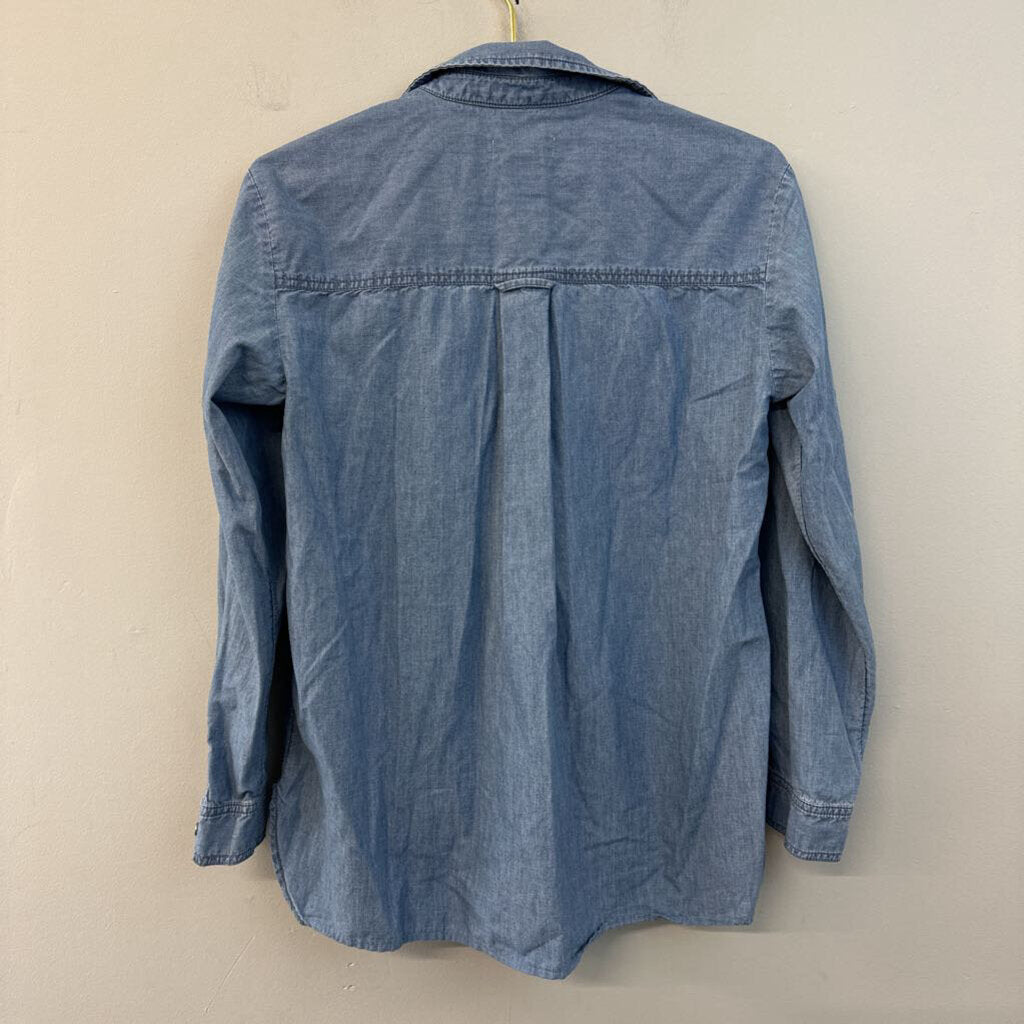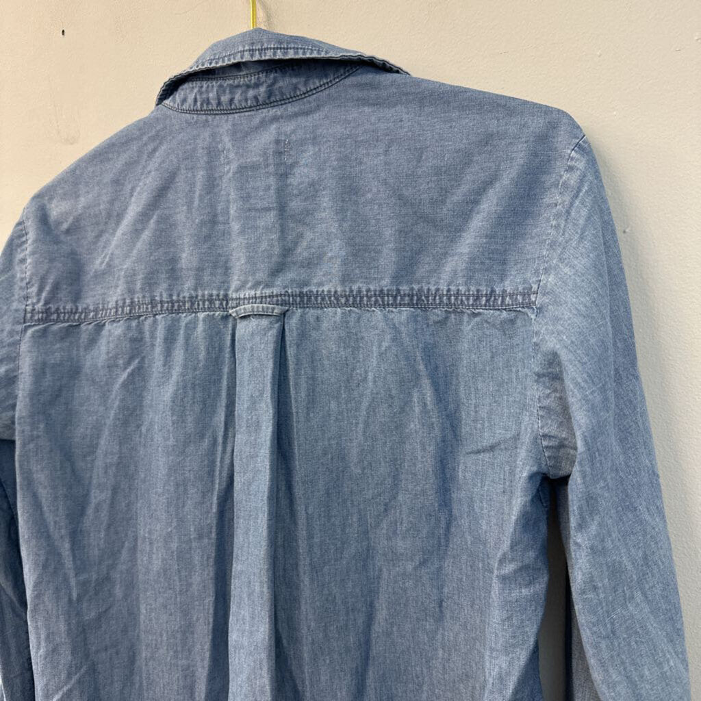 Pilcro and the Letterpress Blue Ruffle Detail Chambray Long Sleeve Button Down Top Small Anthropologie