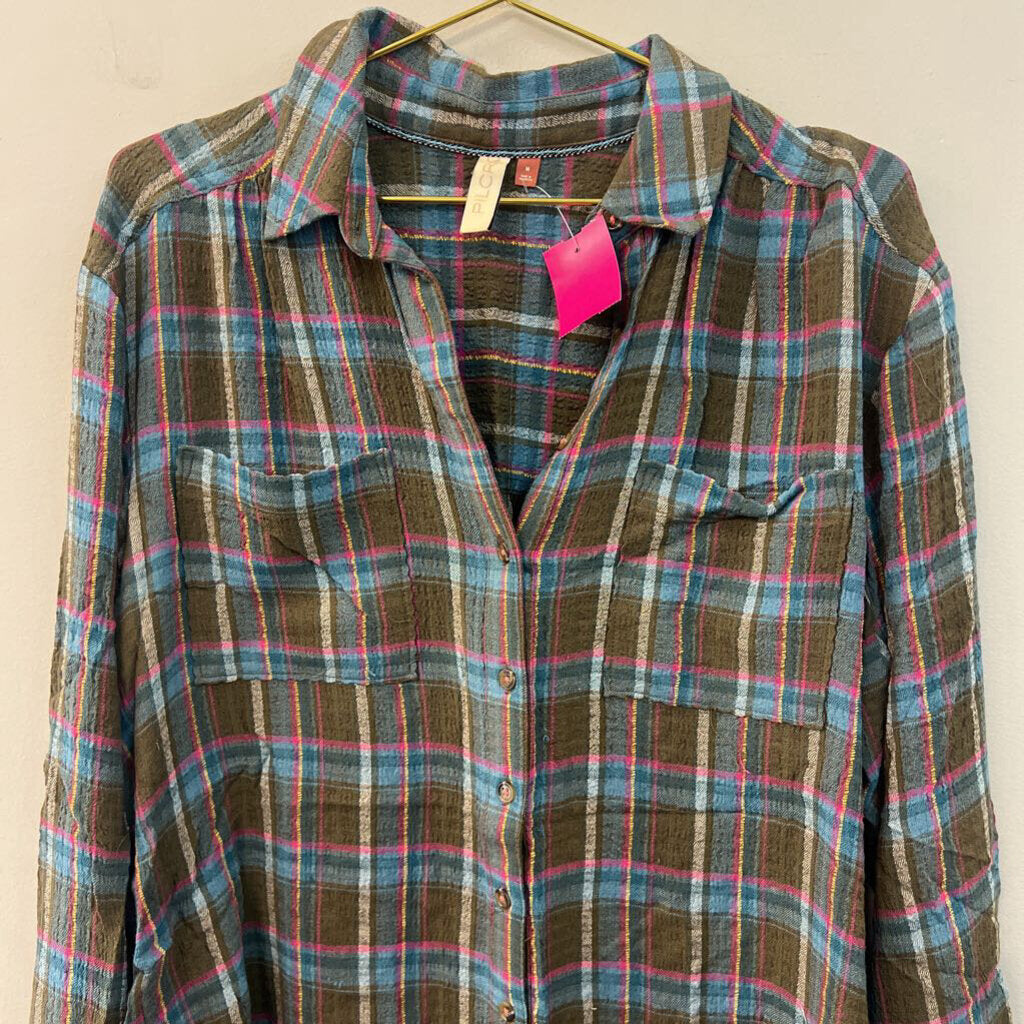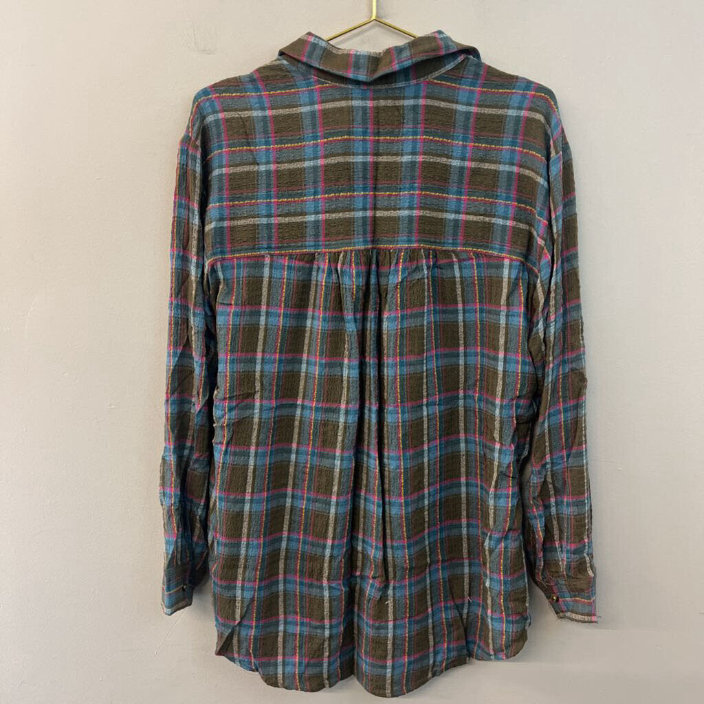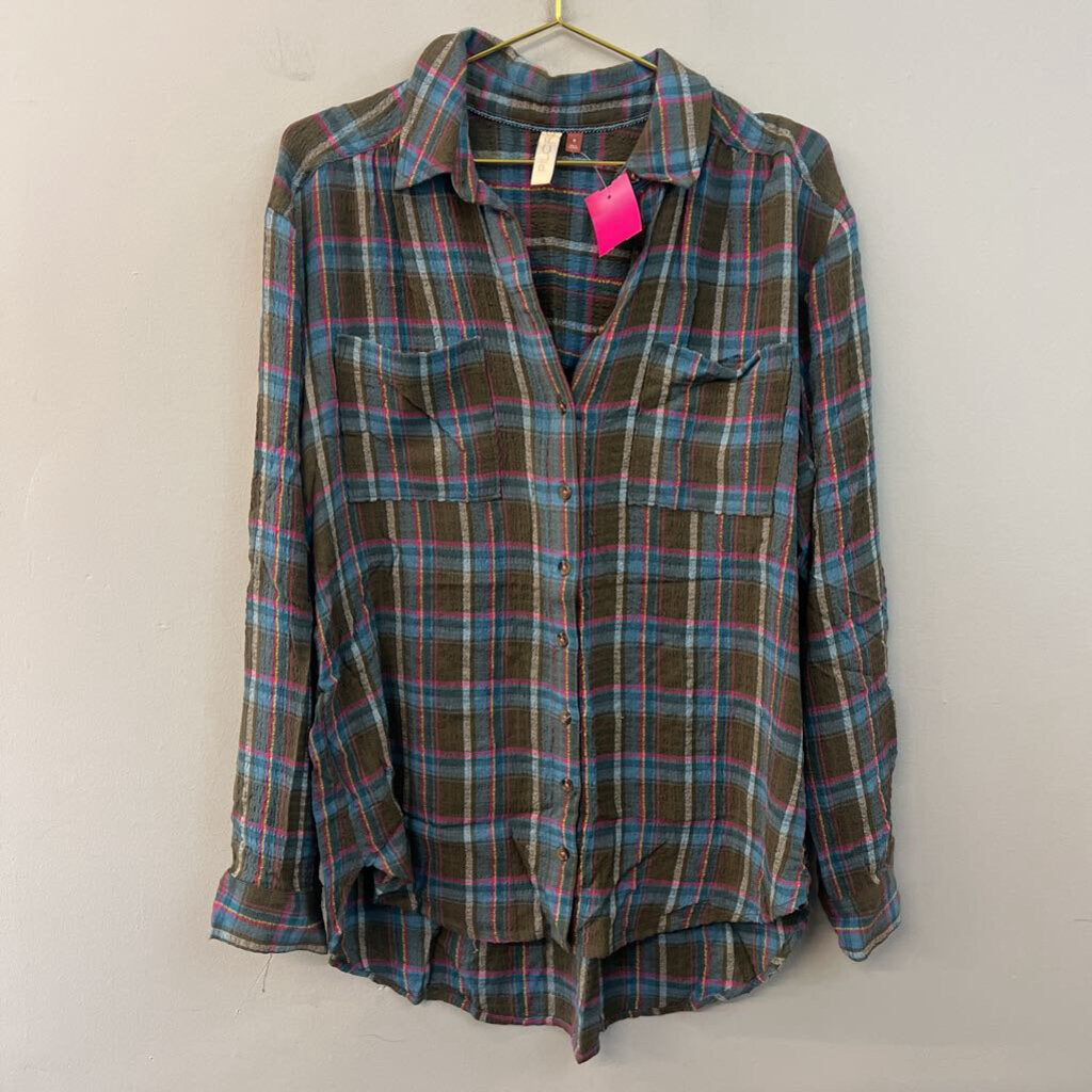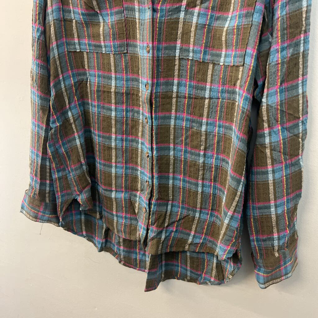 Pilcro Green/ Multi Plaid Long Sleeve Button Down Top Medium