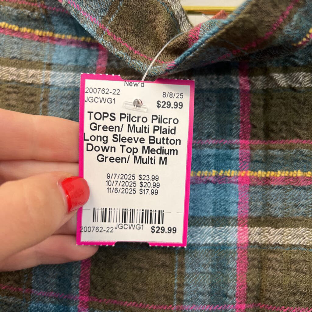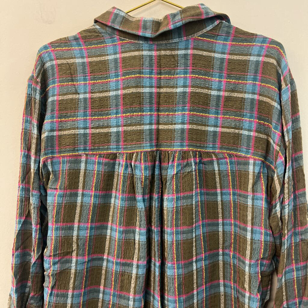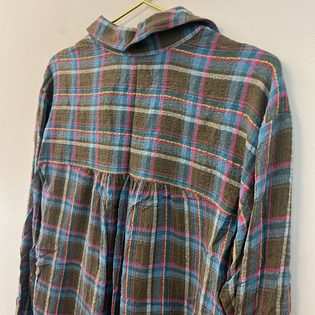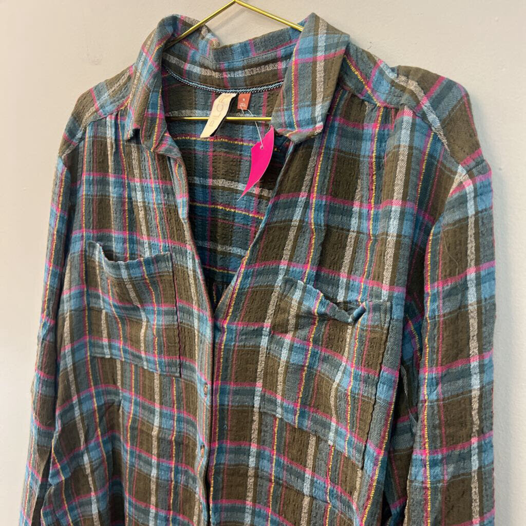 Pilcro Green/ Multi Plaid Long Sleeve Button Down Top Medium