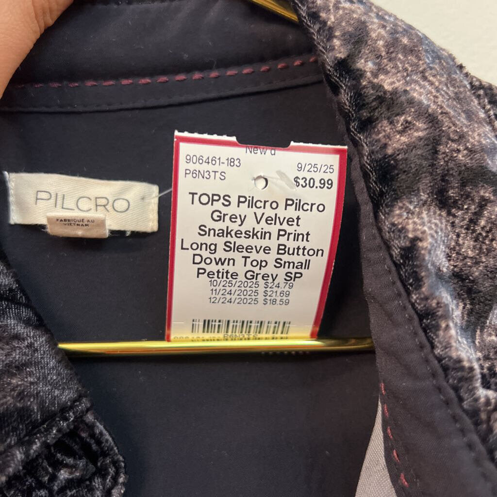 Pilcro Grey Velvet Snakeskin Print Long Sleeve Button Down Top Small Petite