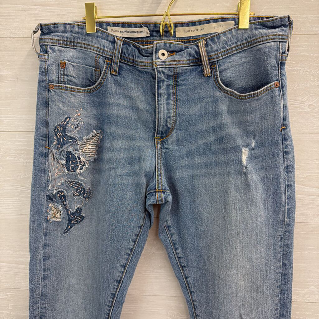 Pilcro Light Wash Slim Boyfriend Patchwork Detail Jeans 31