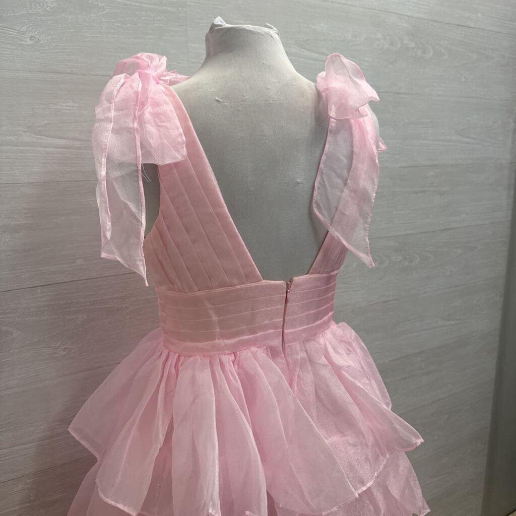 Pink Layered Skirt Bow Strap Detail Long Formal Dress 8