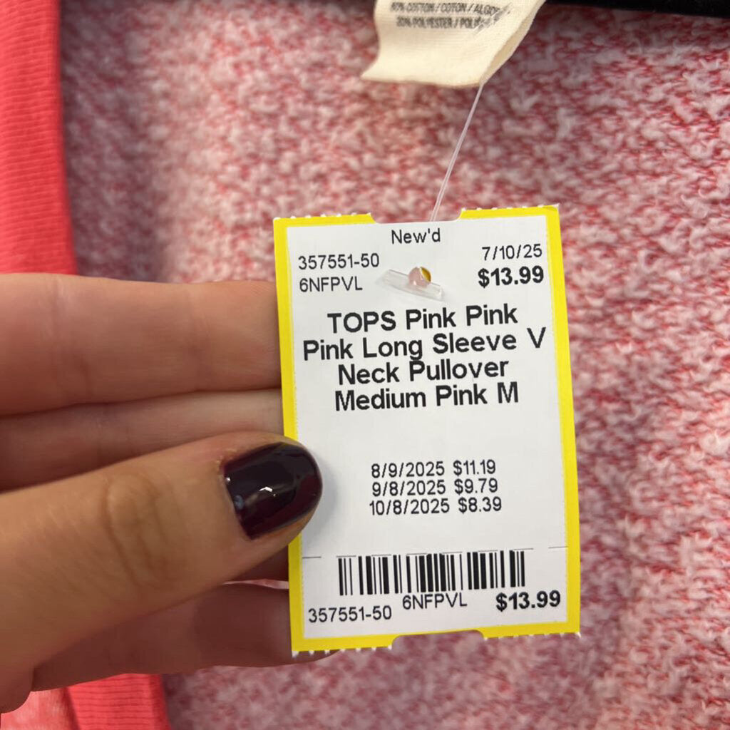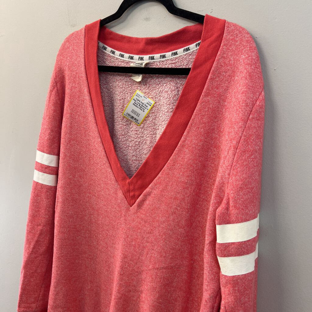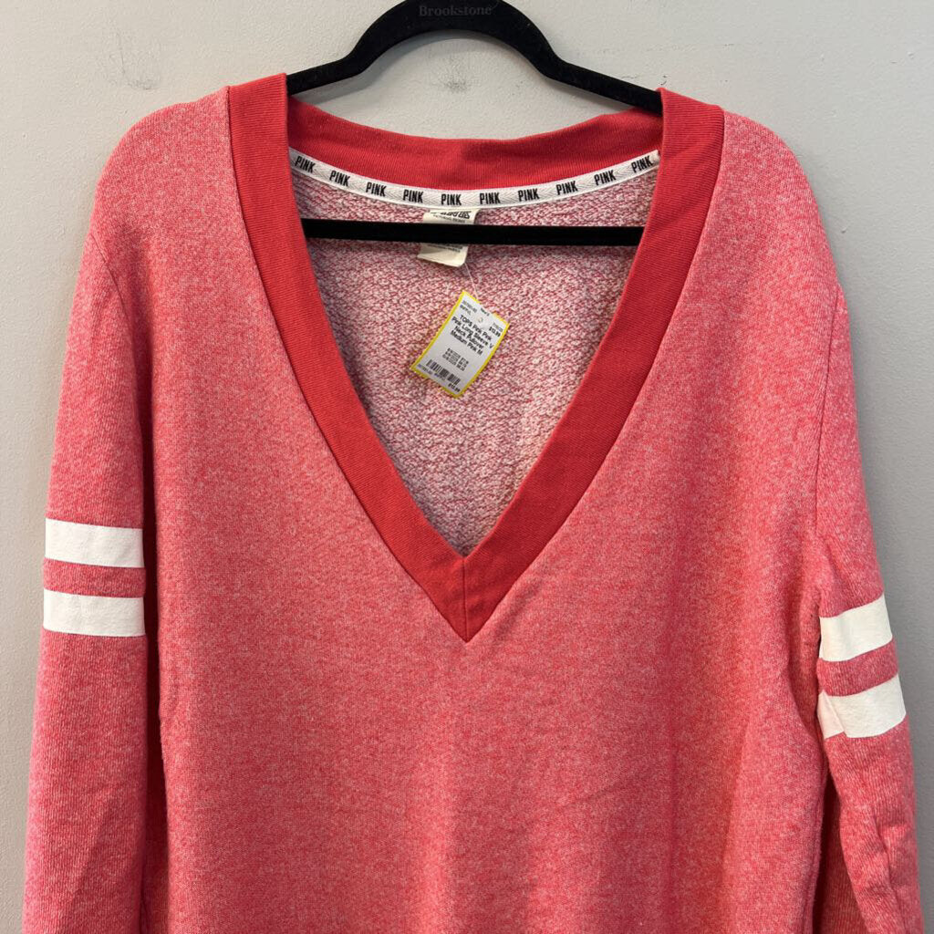 Pink Pink Long Sleeve V Neck Pullover Medium