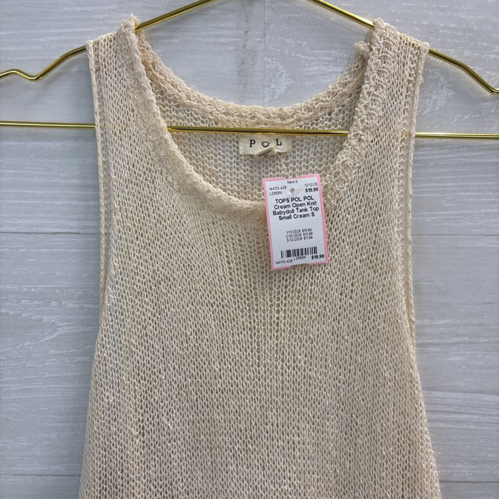 POL Cream Open Knit Babydoll Tank Top Small