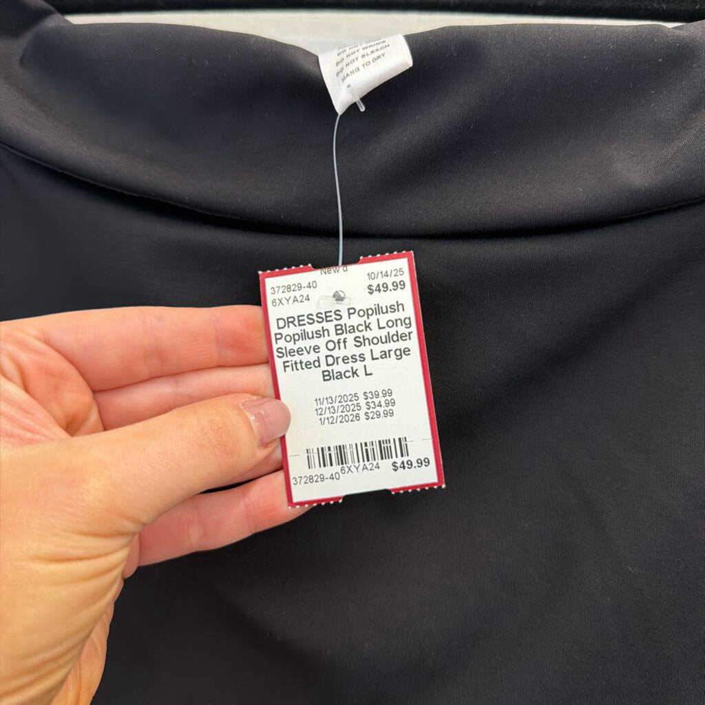 Popilush Black Long Sleeve Off Shoulder Fitted Dress Large
