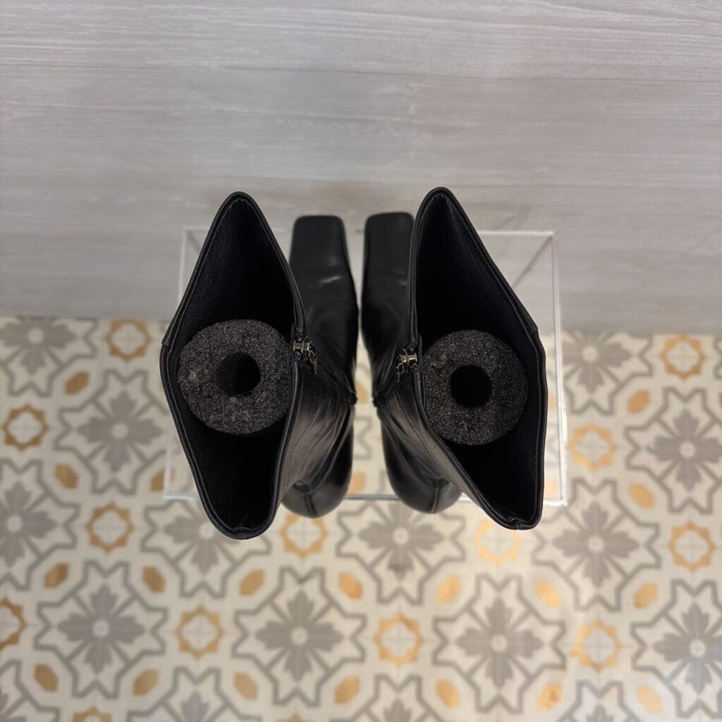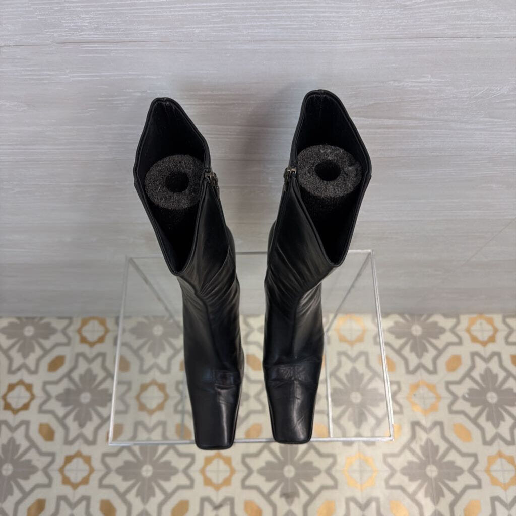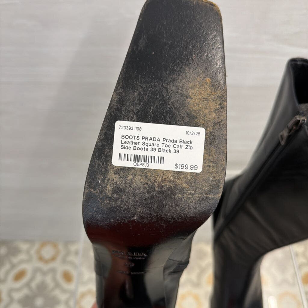 Prada Black Leather Square Toe Calf Zip Side Boots 39