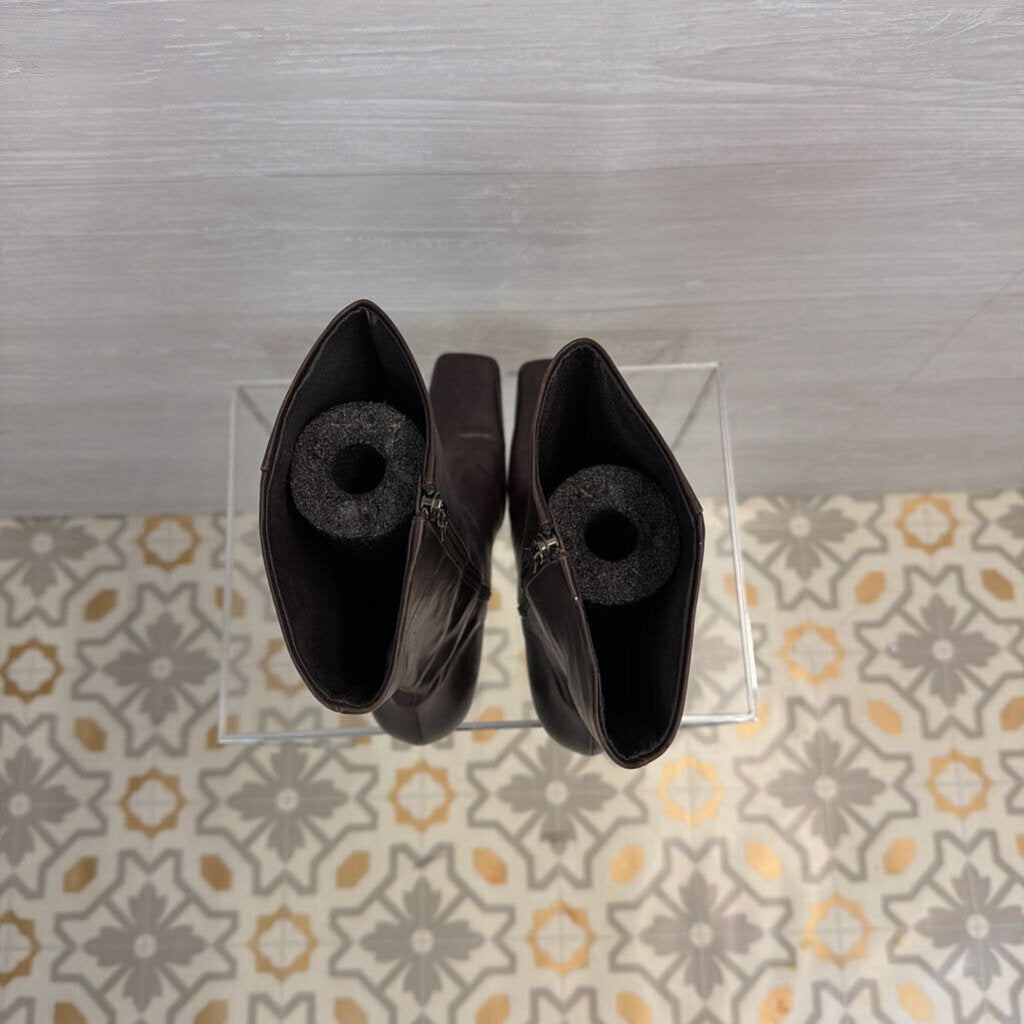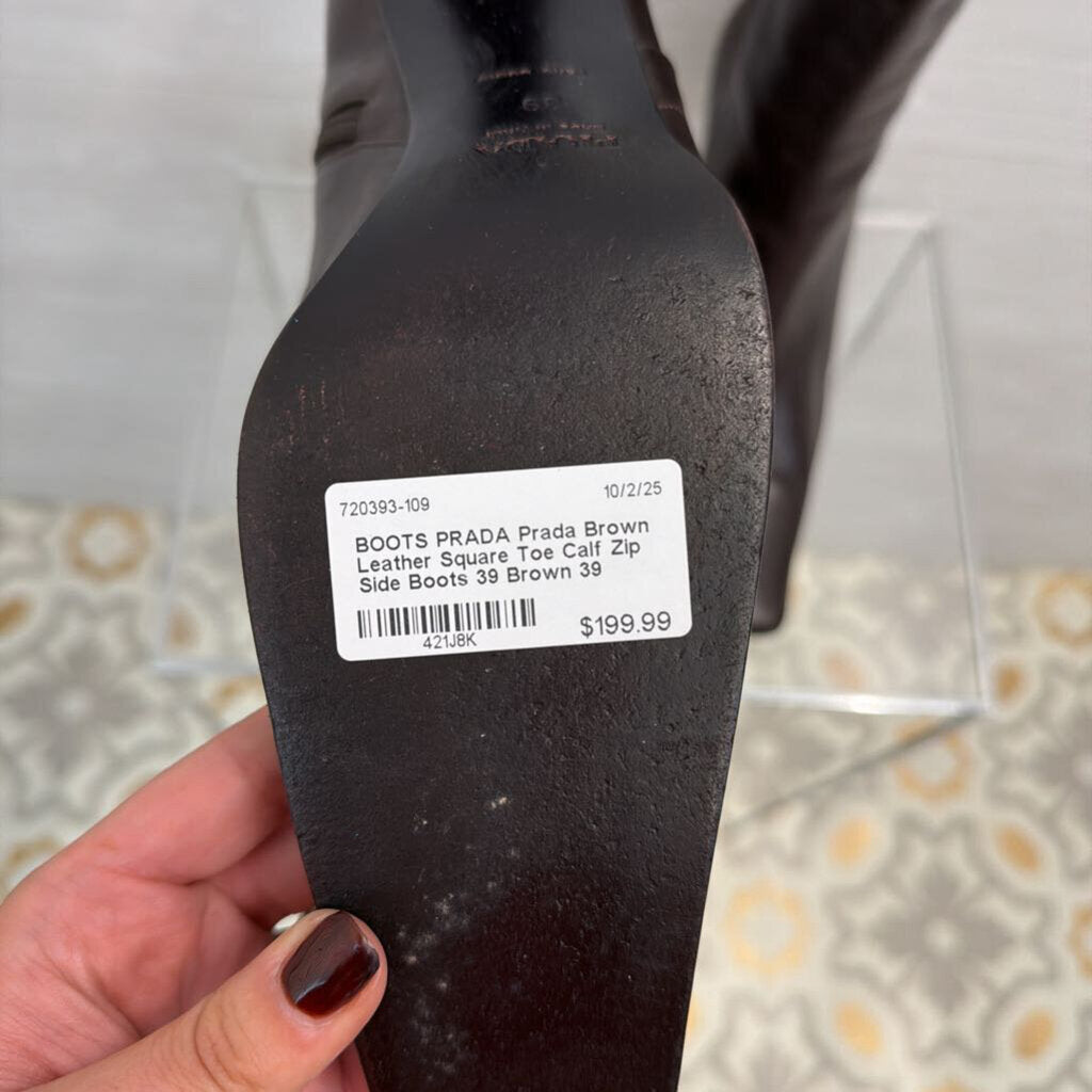 Prada Brown Leather Square Toe Calf Zip Side Boots 39