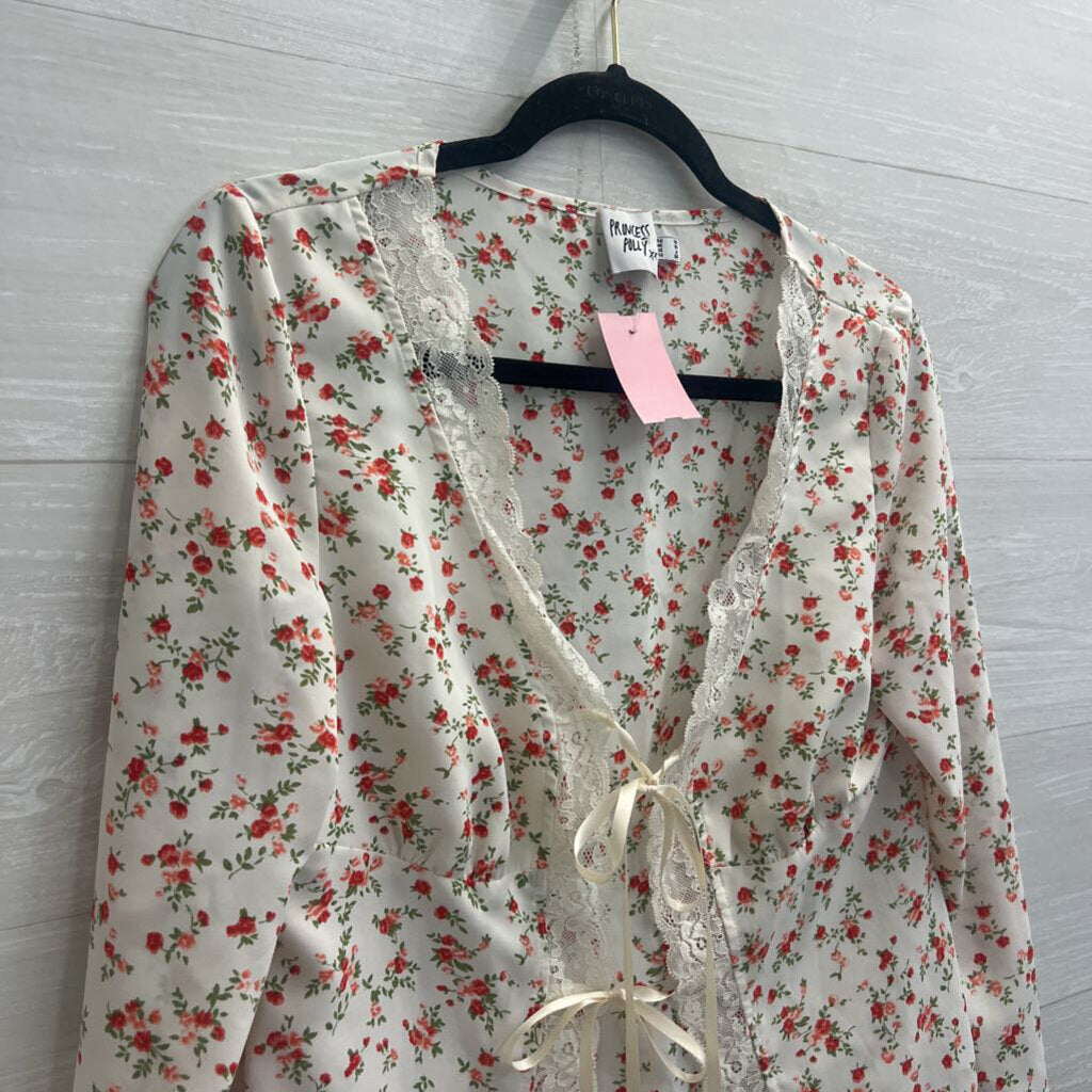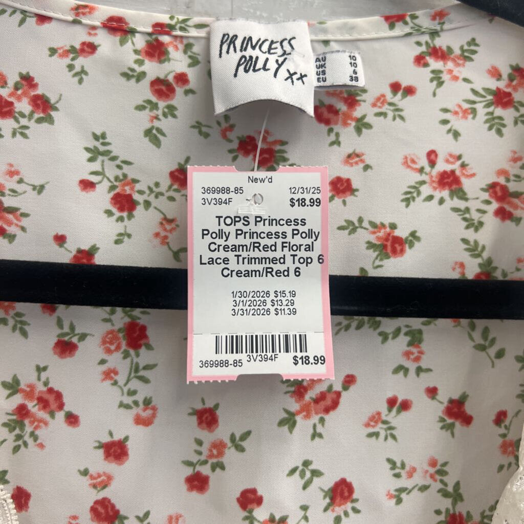 Princess Polly Cream/Red Floral Lace Trimmed Top 6