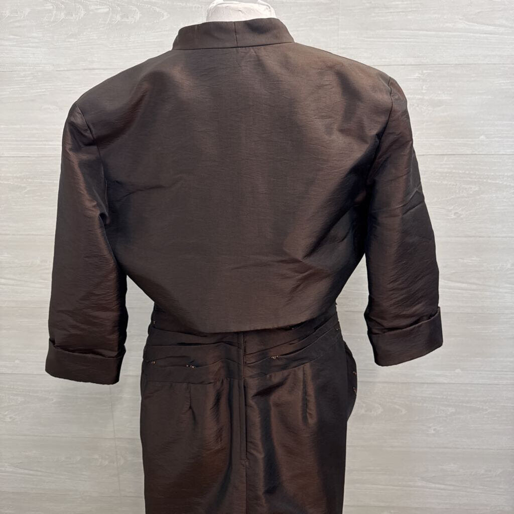 Private Label Occasion Brown Ruched Top Strapless Long Formal Dress With Jacket 6