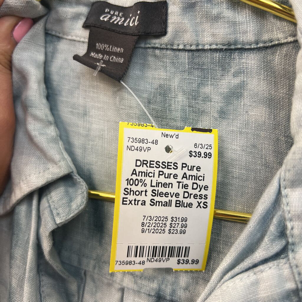 Pure Amici 100% Linen Tie Dye Short Sleeve Dress Extra Small